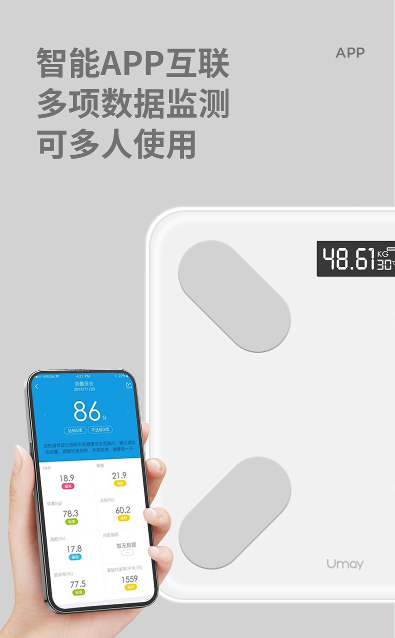 商品名称:(巨邦佑)BJ+Umay佑美全民健身礼盒YM-04 智能体脂秤颈椎按摩夹专业运动跳绳