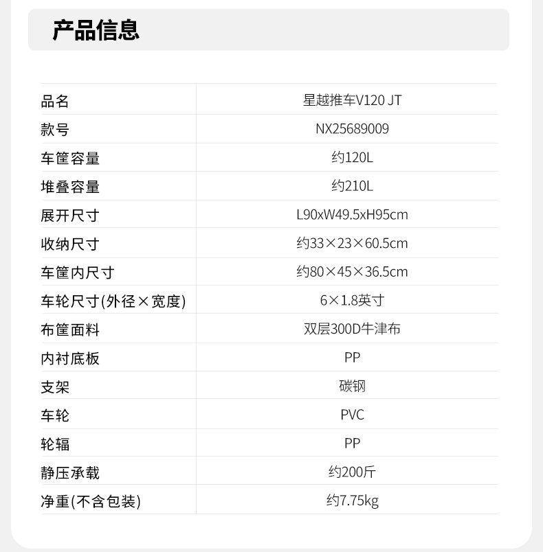 商品名称:(巨邦佑)BJ+牧高笛星越推车V120 JT NX25689009和风沙 大容量高承重快拆布套易打理