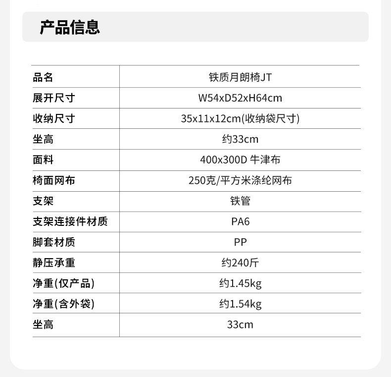 商品名称:(巨邦佑)BJ+牧高笛铁质月朗椅 JT NX25665012和风沙 椅面可拆卸轻自重大承重支架坚实牢固