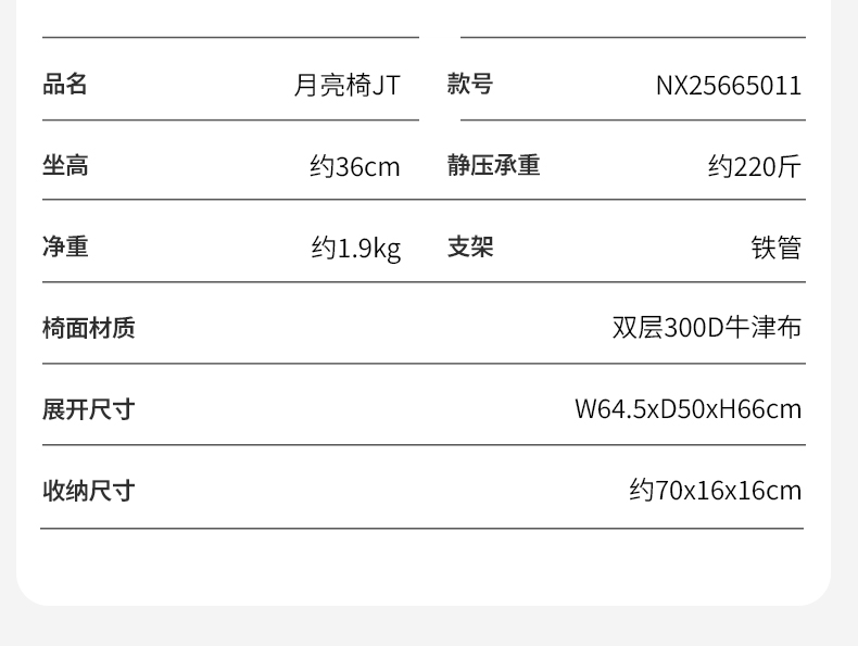 商品名称:(巨邦佑)BJ+牧高笛月亮椅JT NX25665011和风沙 宽大舒适包裹感展开即坐稳固高承重