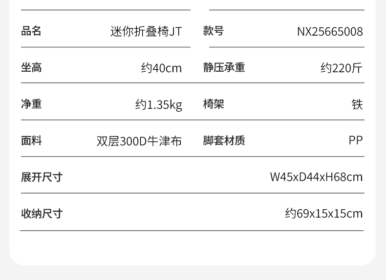 商品名称:(巨邦佑)BJ+牧高笛迷你折叠椅JT NX25665008和风沙 轻自重高承重一秒即坐