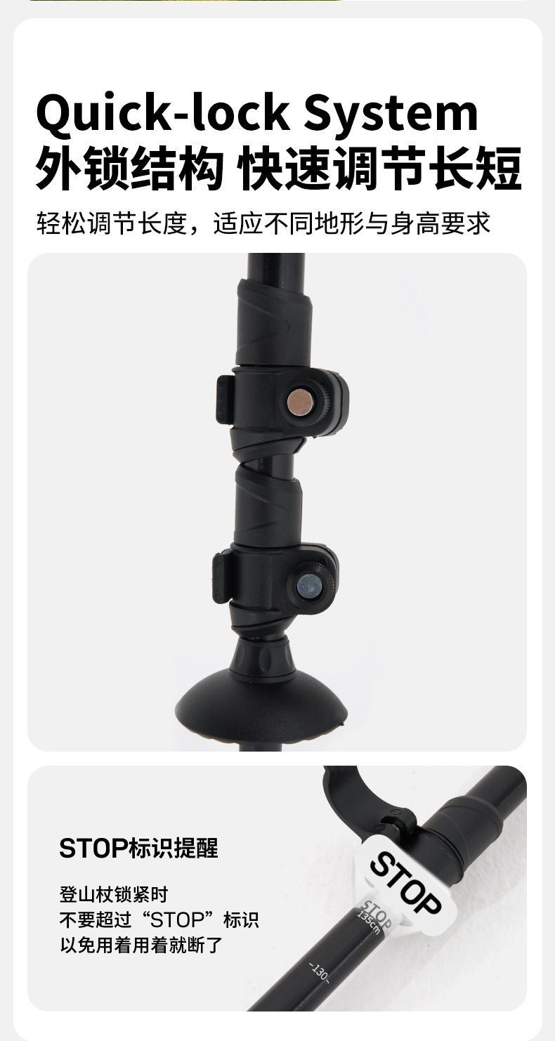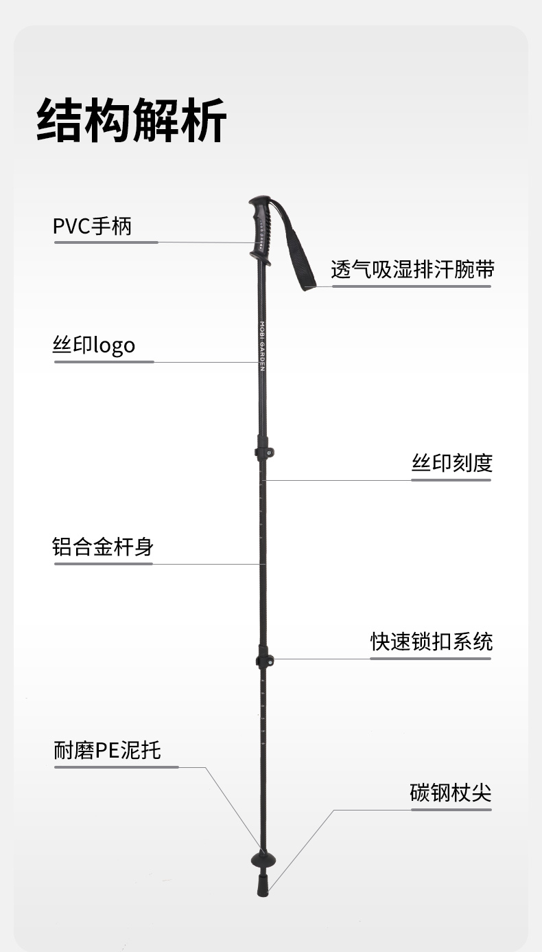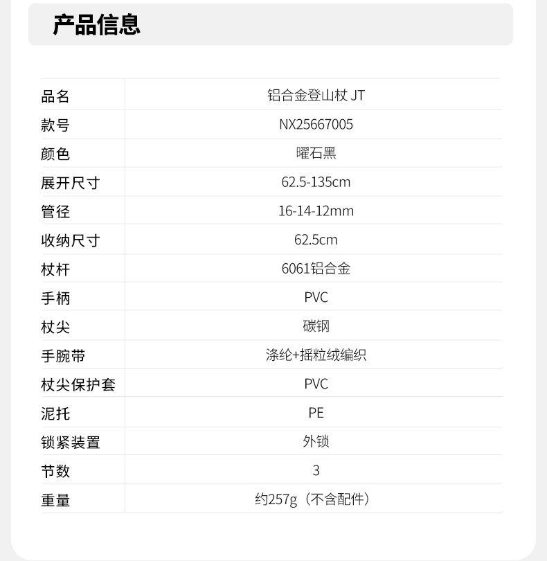 商品名称:(巨邦佑)BJ+牧高笛铝合金登山杖 JT NX25667005曜石黑 高强度铝合金三节伸缩