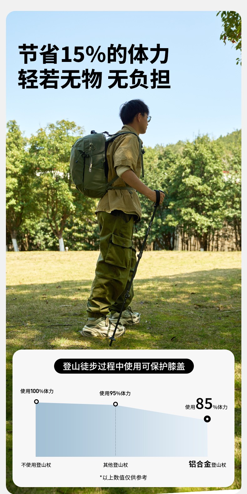 (巨邦佑)BJ+牧高笛铝合金登山杖 JT NX25667005曜石黑 高强度铝合金三节伸缩
