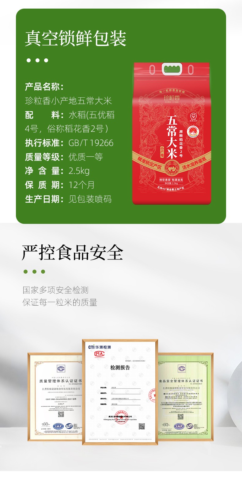 商品名称:(巨邦佑)T+珍粒香小产地五常大米2.5kg