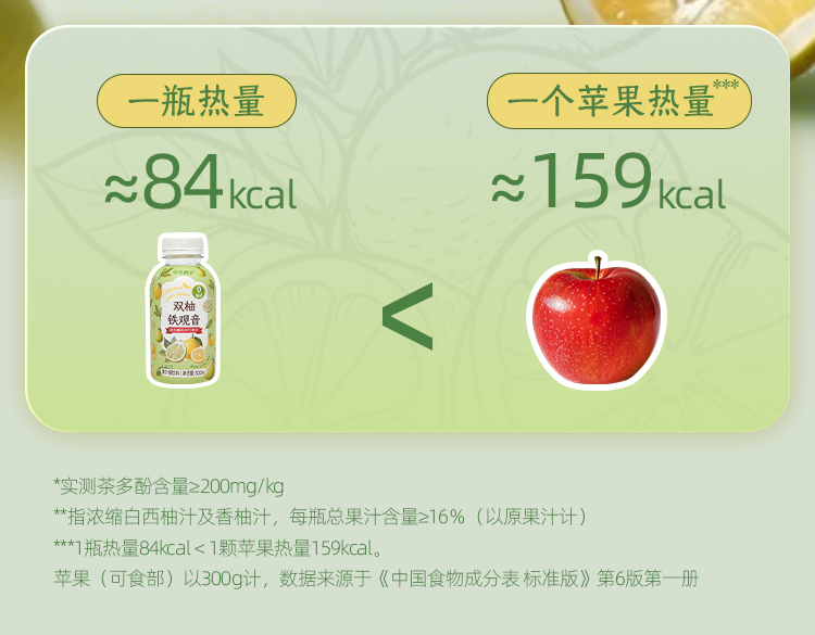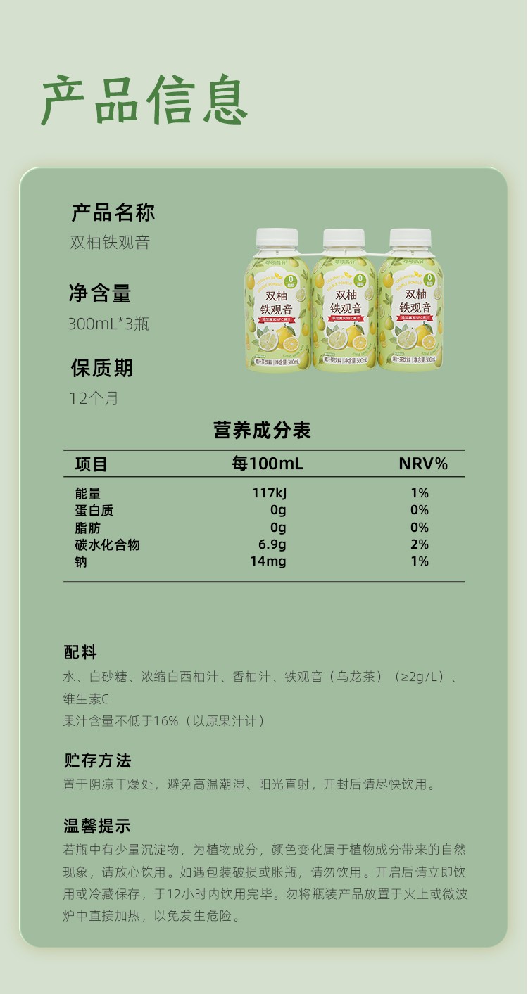 商品名称:(世星阳光)可可满分双柚铁观音 300ml×3瓶×2组(6瓶)3倍果汁 2倍茶多酚 零脂