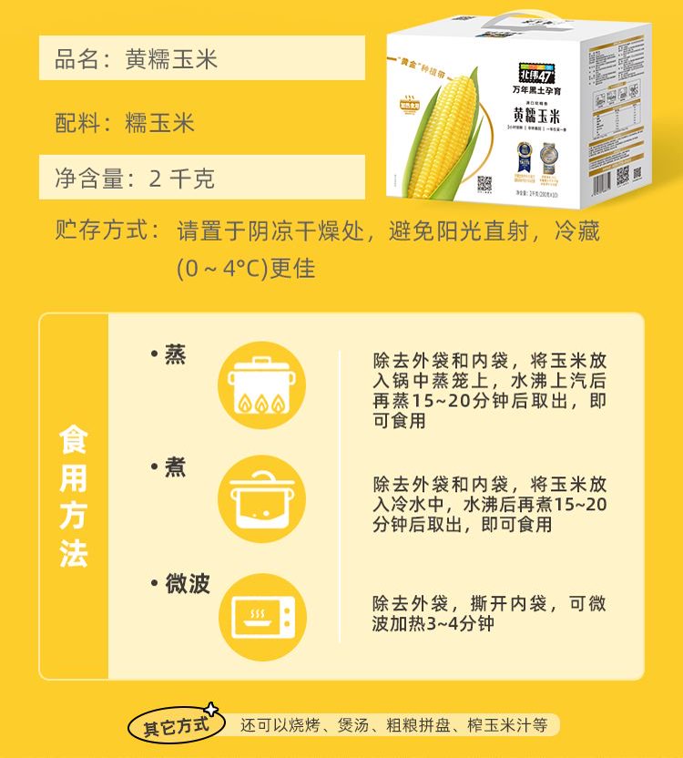 商品名称:(巨邦佑)R+北纬47°黄糯玉米4斤(200g*10根)东北甜黏鲜玉米棒真空包装 早餐苞米