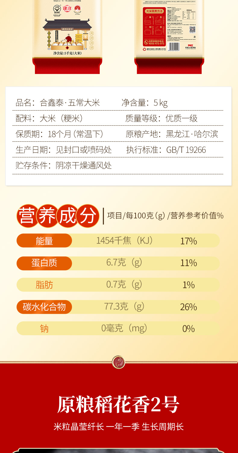商品名称:(世星阳光)合鑫泰东北五常香米5kg+鲁花玉米胚芽油1.8L 米油组合装 当季新米一年一季 真空锁鲜包装 精选非转基因玉米胚芽 含丰富的多元不饱和脂肪酸 色泽清亮油烟少
