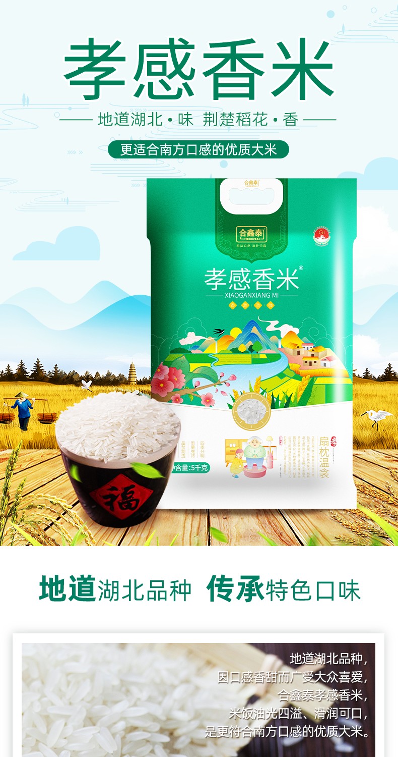 商品名称:(世星阳光)合鑫泰孝感香米5KG 地道湖北味 荆楚稻花香 一年一季 传统方式播种 颗粒均匀 米粒纤长