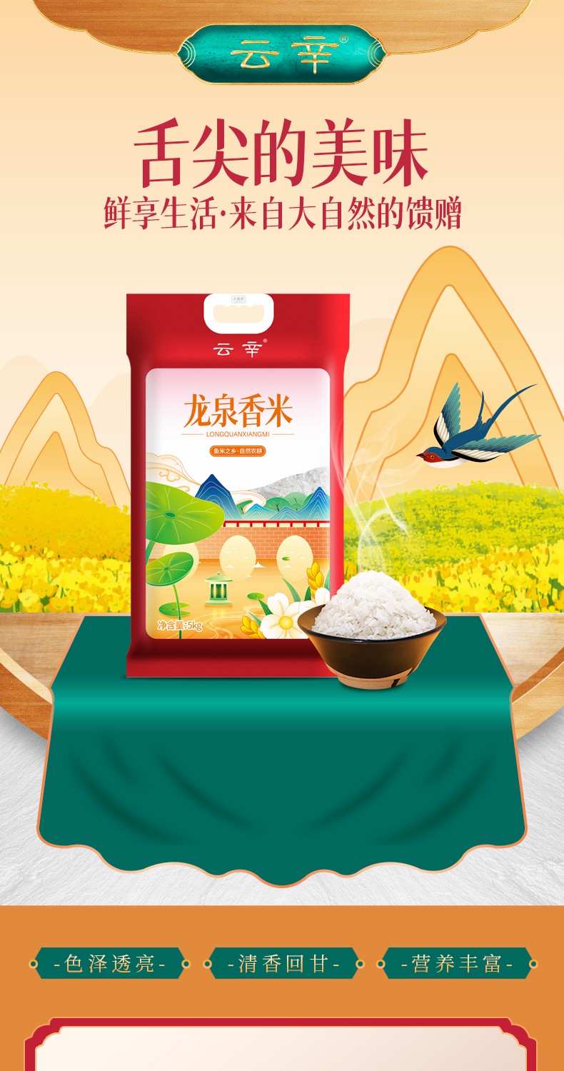 商品名称:(世星阳光)云辛龙泉香米5KG 一年一季 传统农耕 粒形圆润饱满 营养健康美味