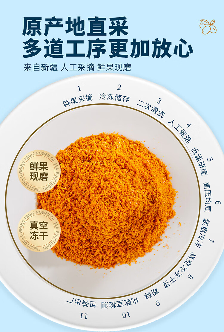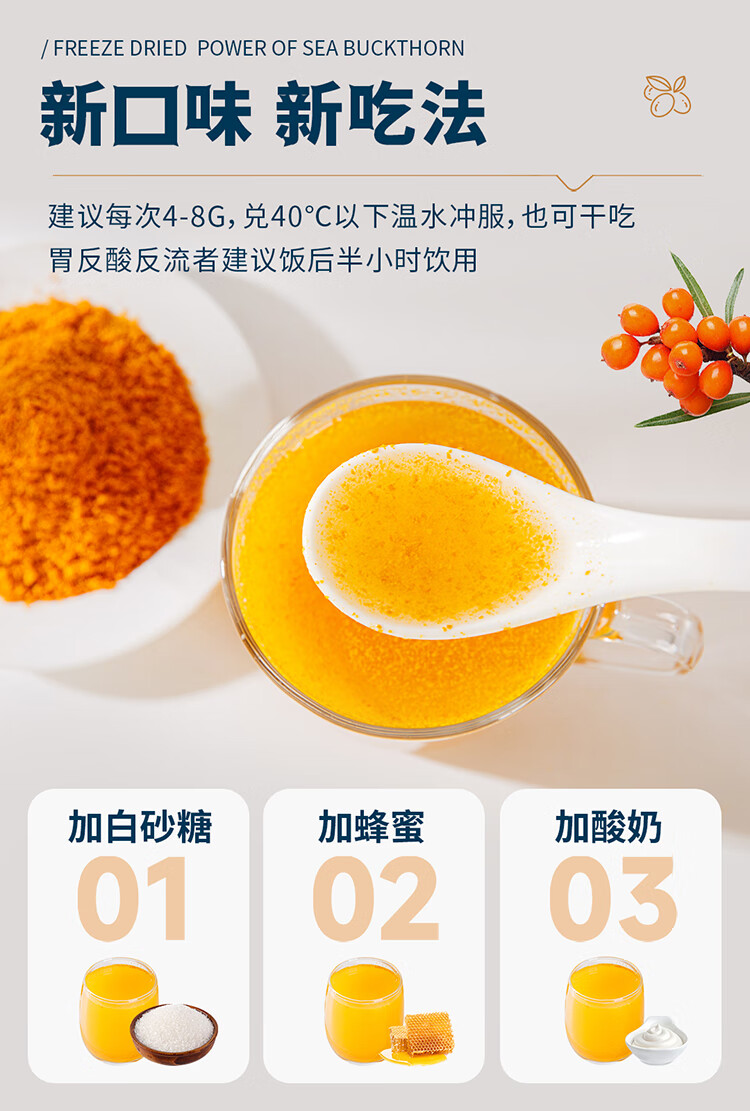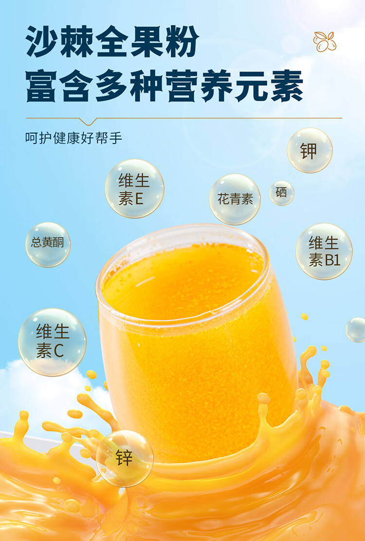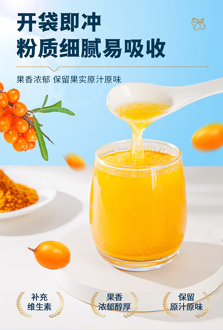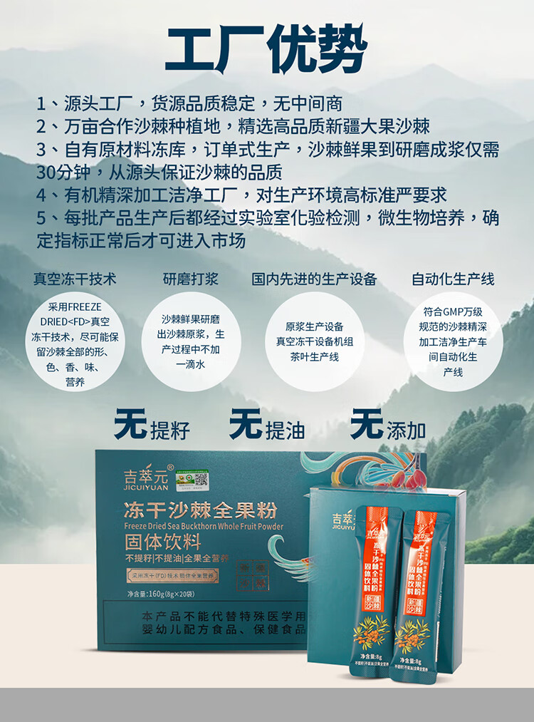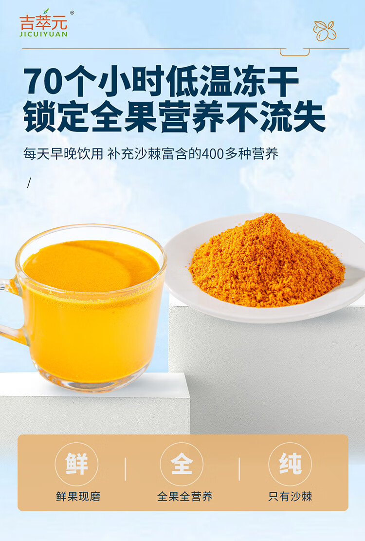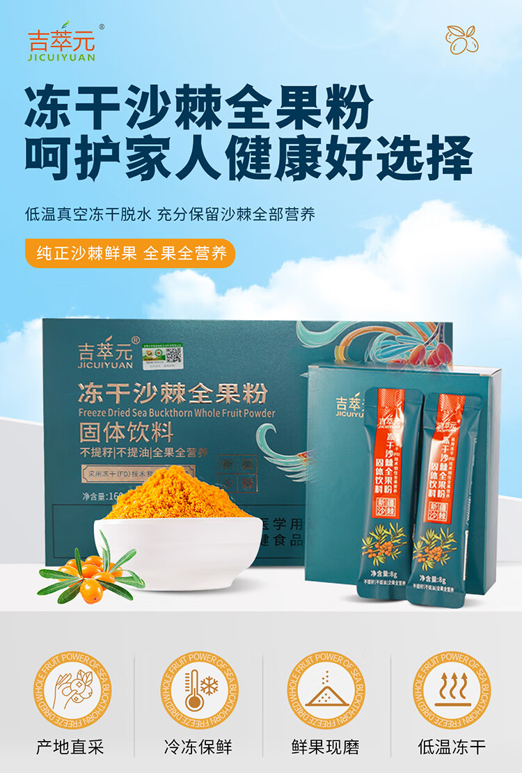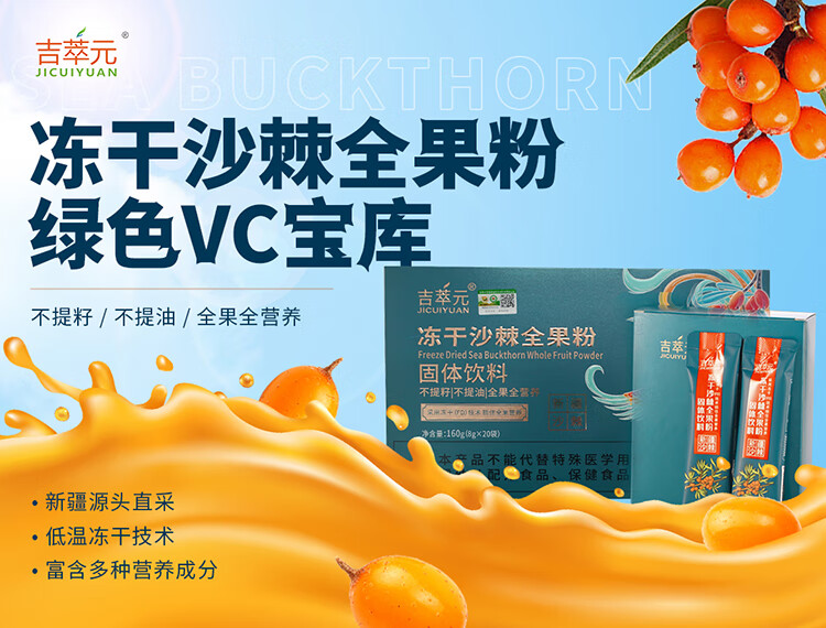 商品名称:(巨邦佑)BJ+吉萃元有机冻干沙棘全果粉8g*20条 新疆冲饮固体饮料含沙棘果油