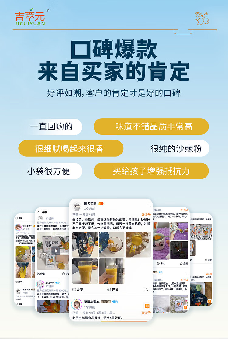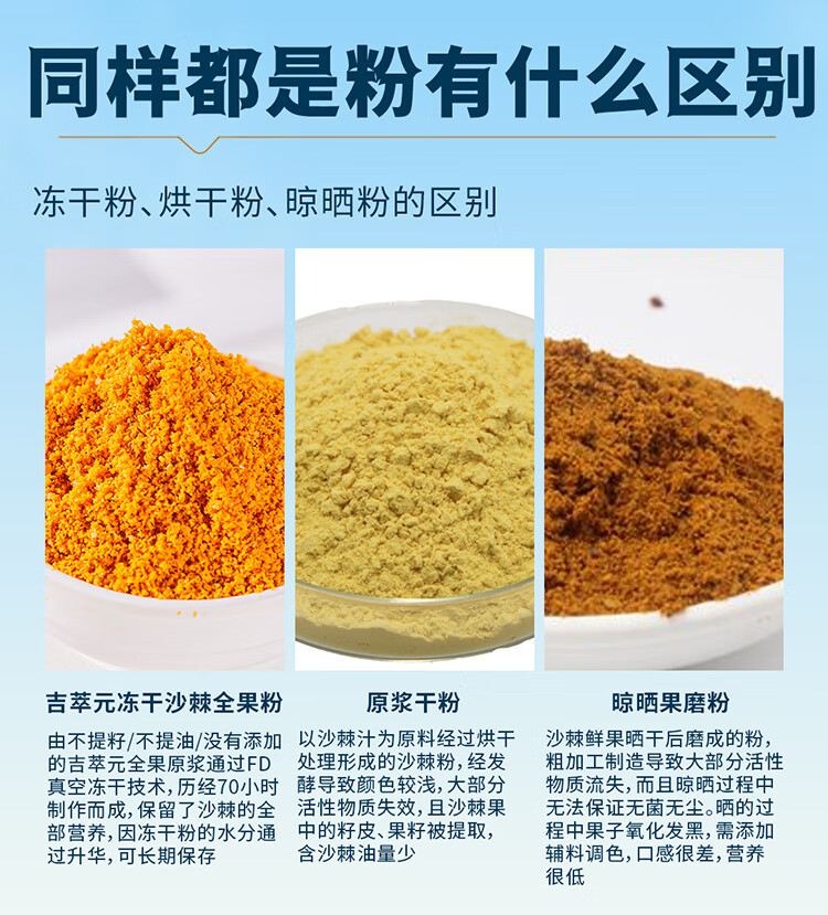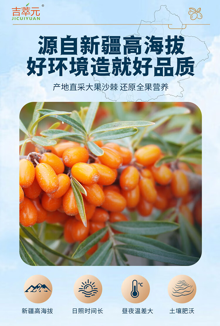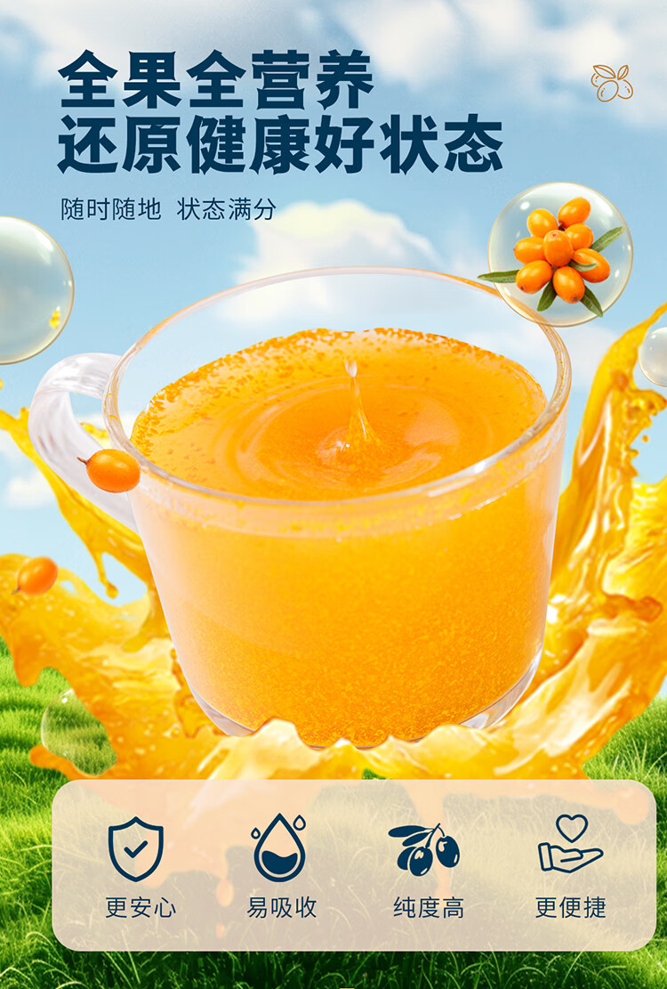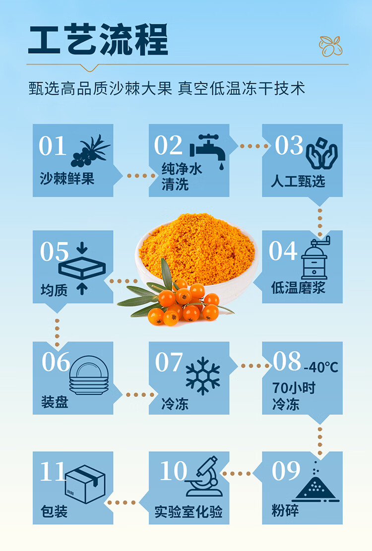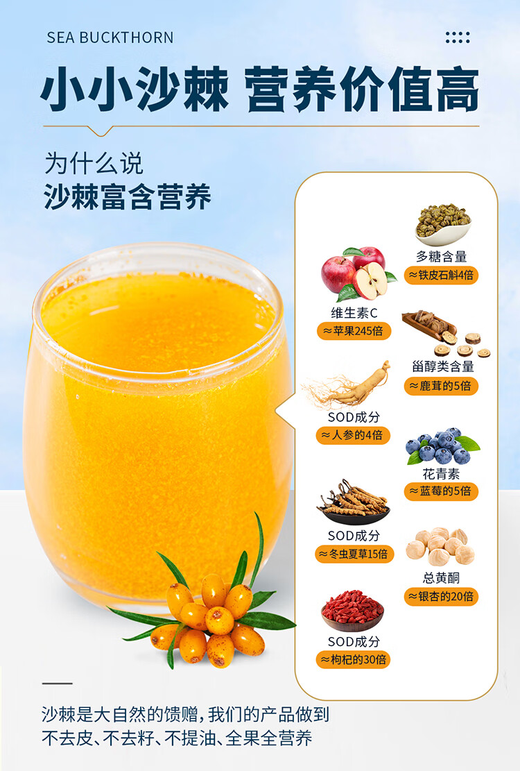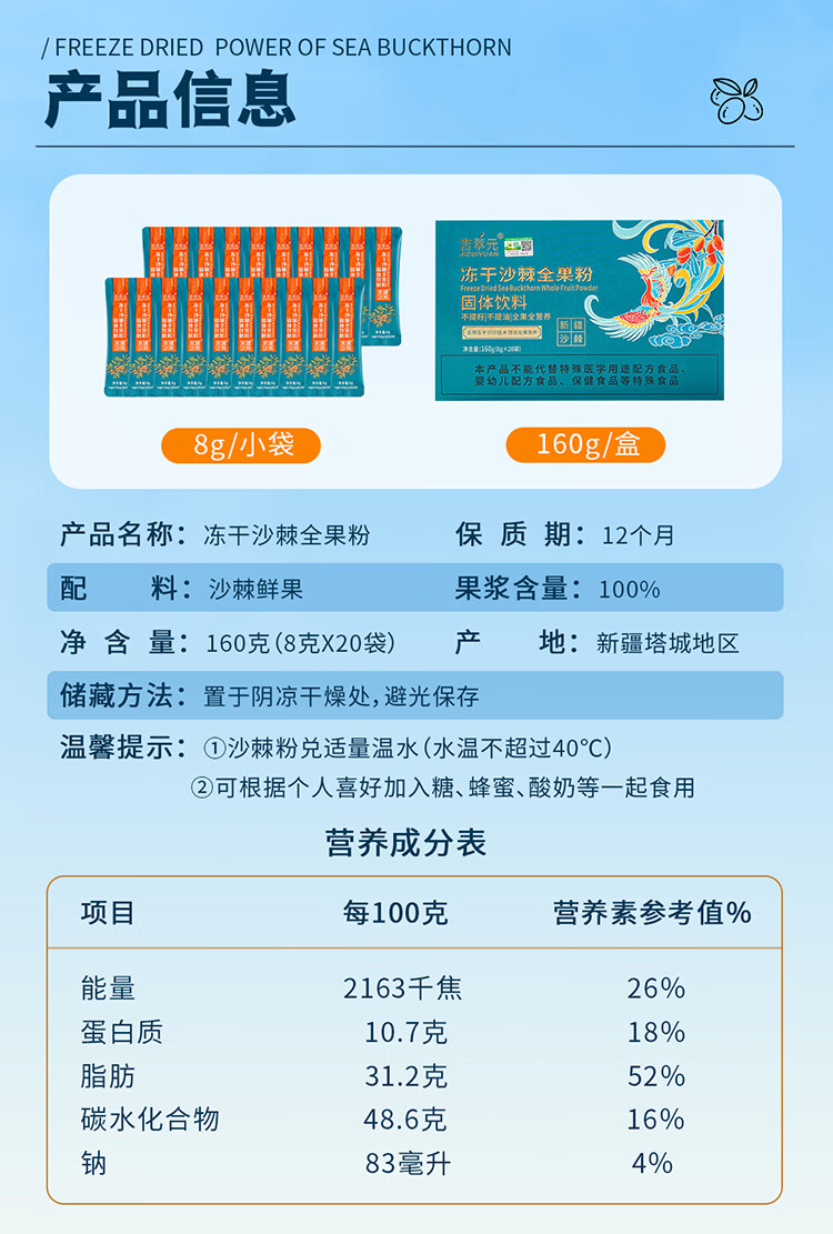 商品名称:(巨邦佑)BJ+吉萃元有机冻干沙棘全果粉8g*20条 新疆冲饮固体饮料含沙棘果油