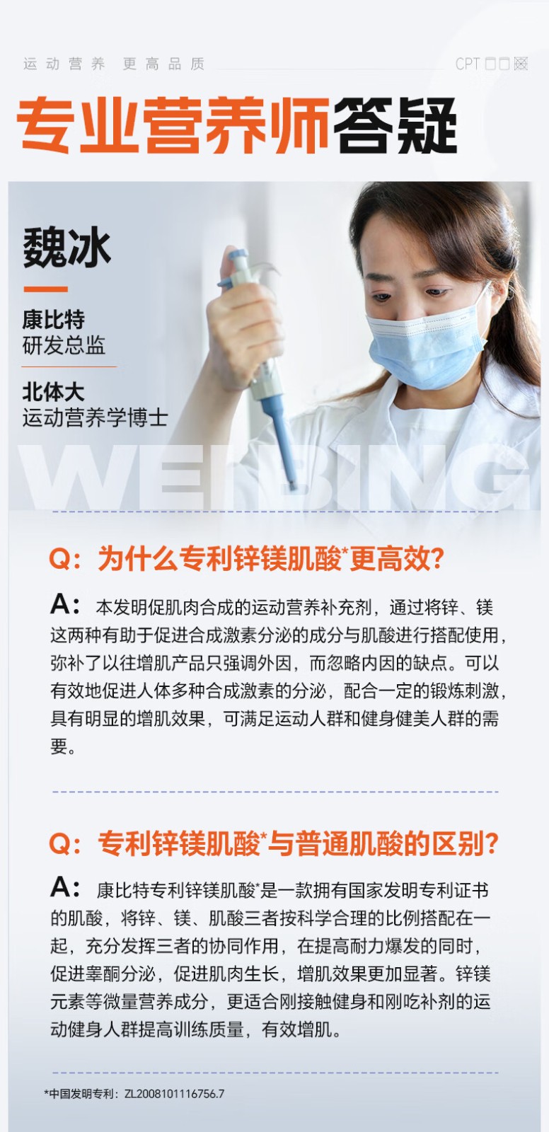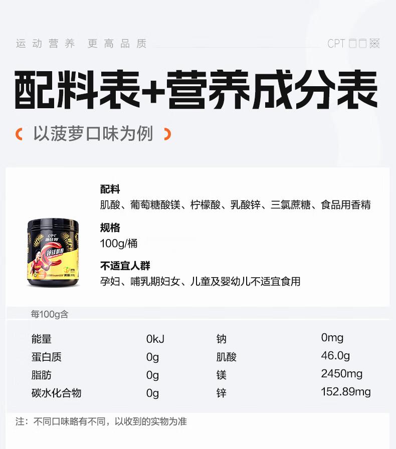 商品名称:(巨邦佑)BJ+康比特 锌镁肌酸运动营养粉菠萝味100g 99.9%纯度健身运动补剂