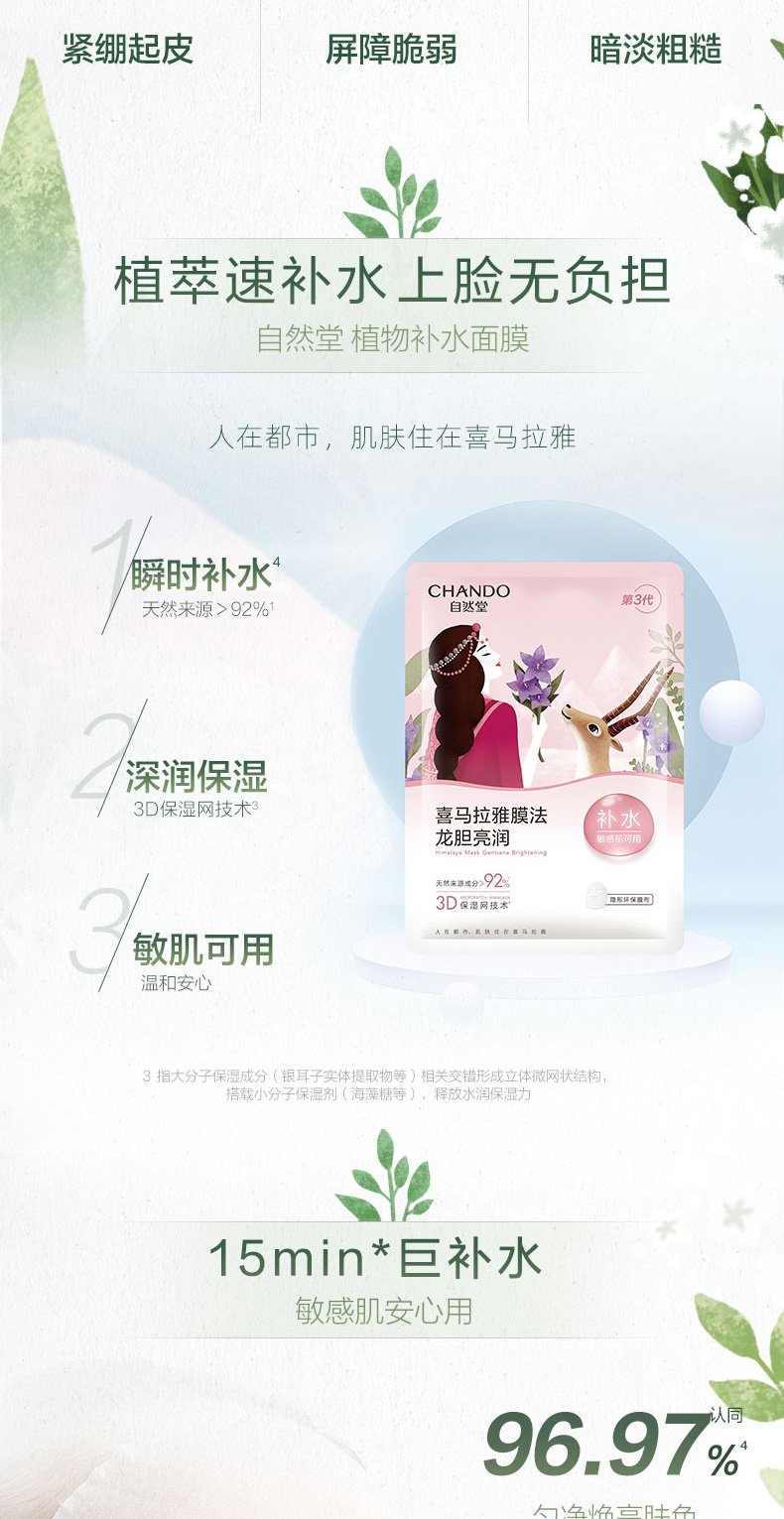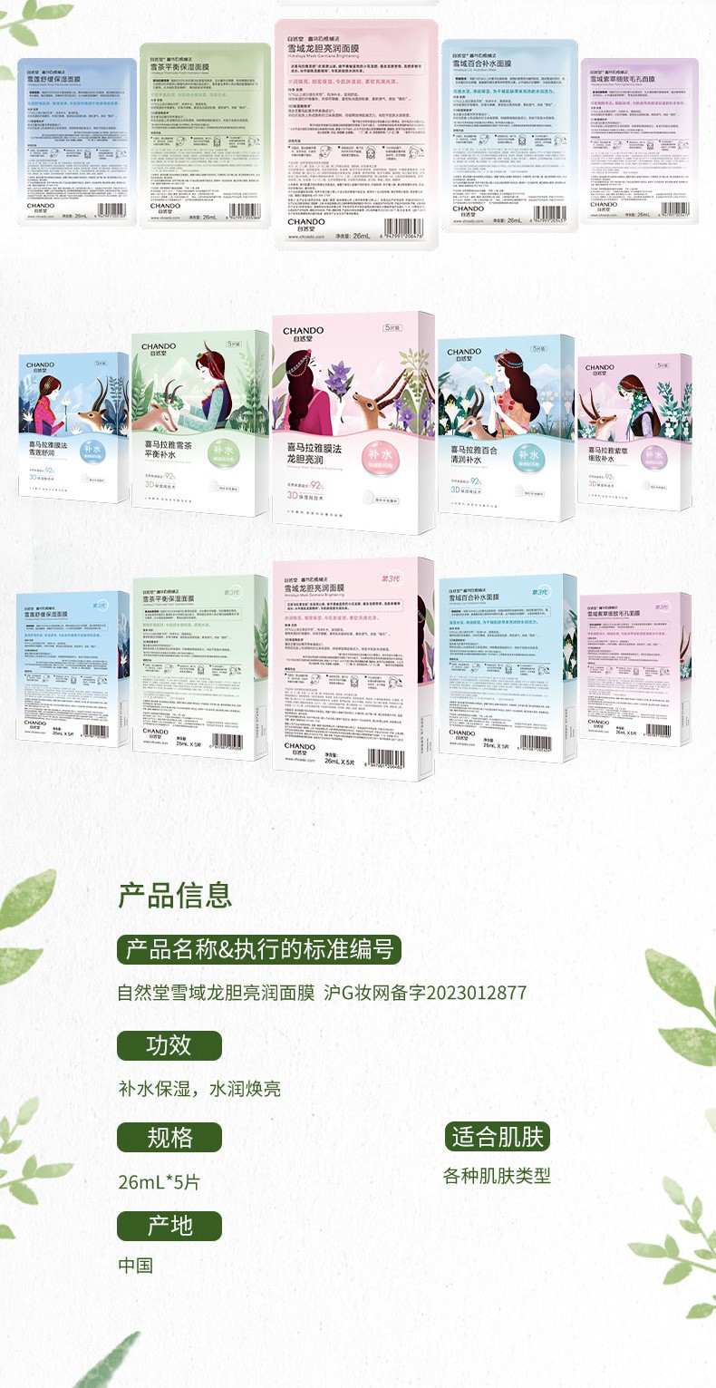 商品名称:(世星阳光)自然堂植物面膜 26ml*5片喜马拉雅植物补水保湿面膜 平衡水油 适敏舒缓 龙胆亮润 (透亮水润)