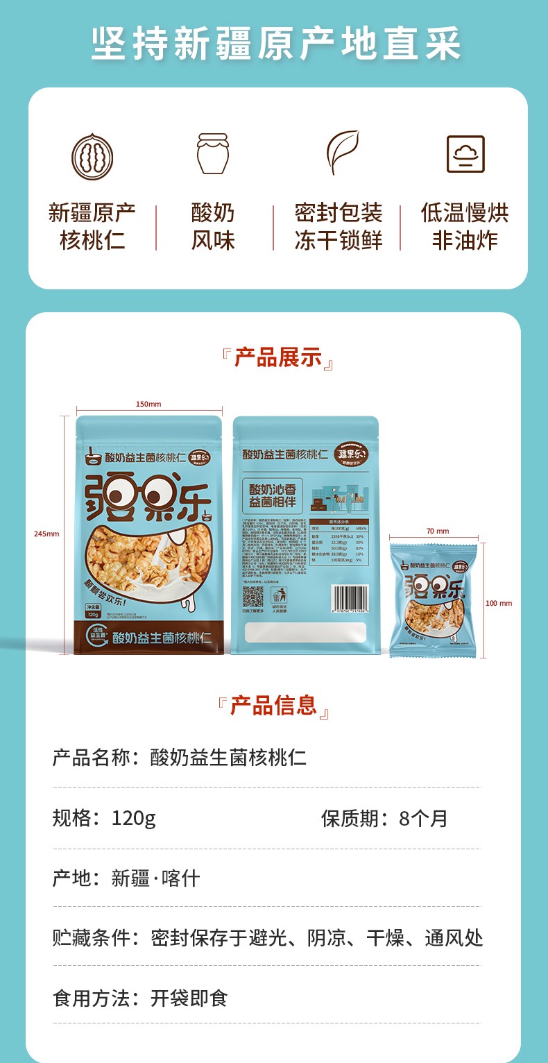 商品名称:(世星阳光) 疆果乐酸奶益生菌核桃仁120g 酸奶益生菌坚果仁干果炒货独立包装零食
