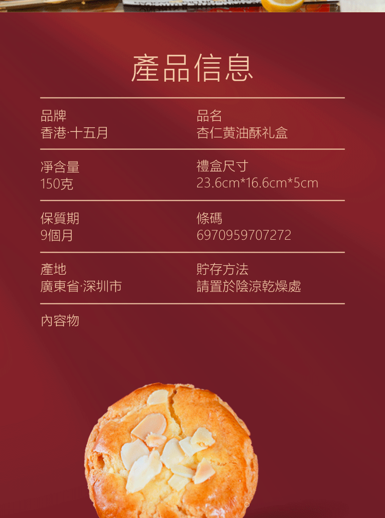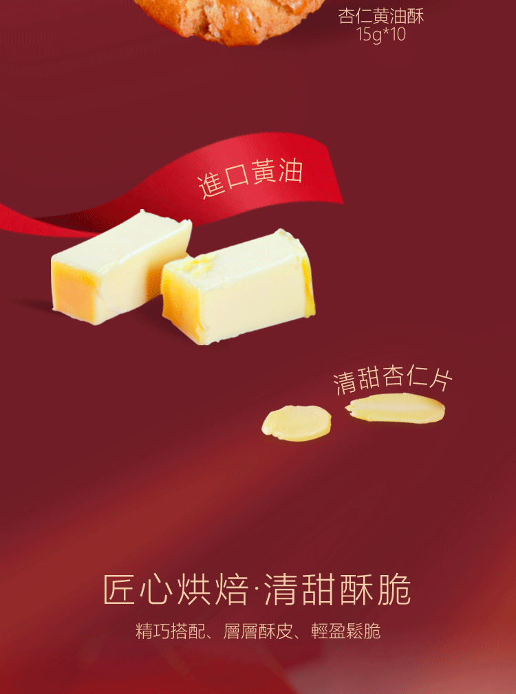 商品名称:(世星阳光) 十五月杏仁黄油酥礼盒*2 单盒150g 进口黄油 清甜杏仁片 精巧搭配 层层酥皮 清盈松脆 入口即化