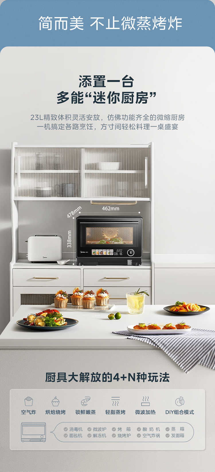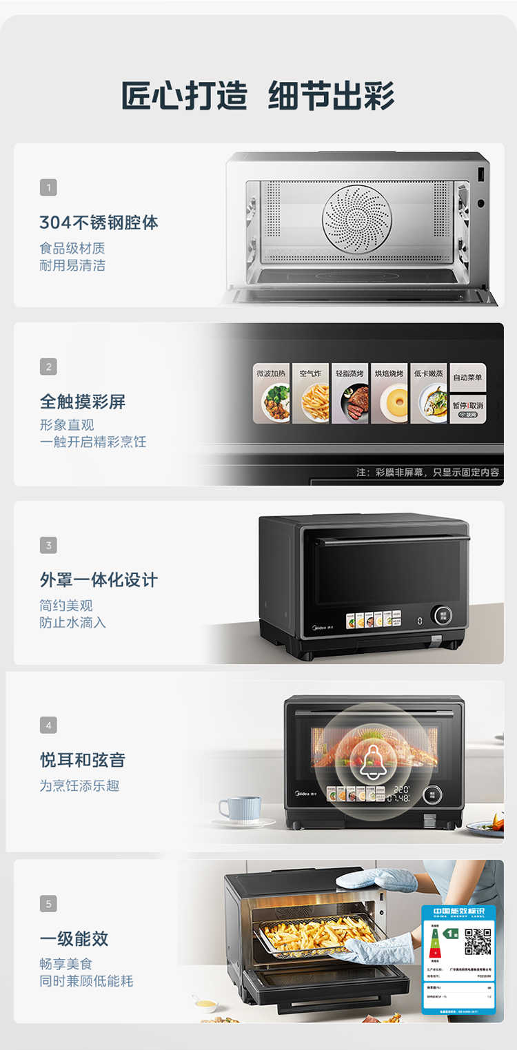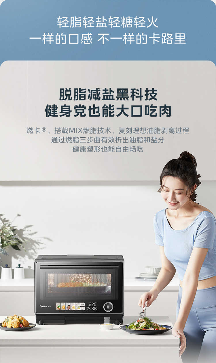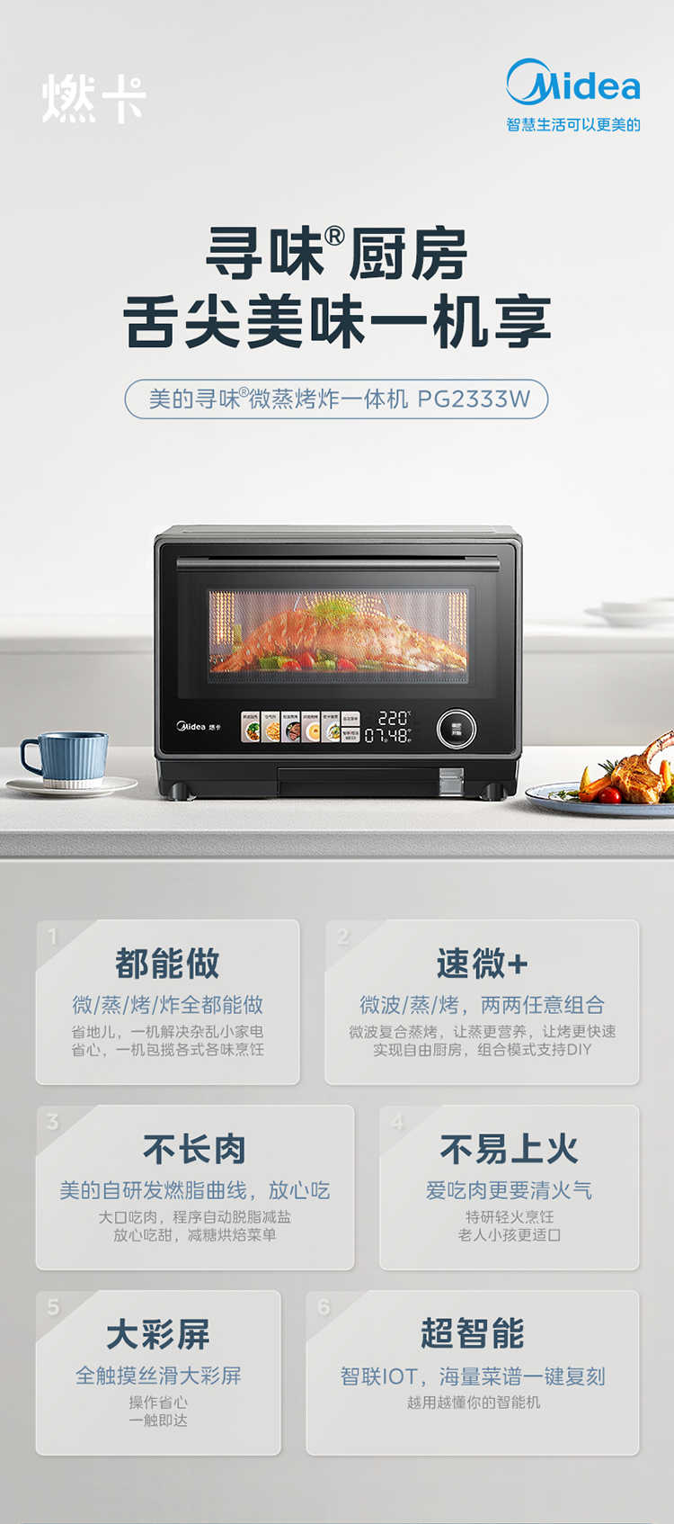 (巨邦佑)R+美的(Midea)寻味系列 变频微波炉PG2333W 家用微蒸烤炸四合一 旋钮触控操作简单精准控温智能菜单一键解冻