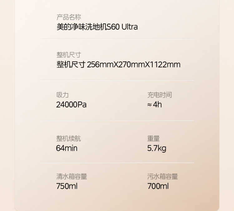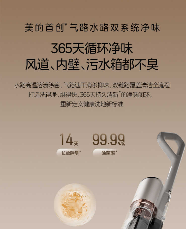 商品名称:(巨邦佑)R+美的(Midea)S60Ultra净味洗地机【AI全向助力 100°除菌洗】躺平洗拖吸一体自动清洗拖地机