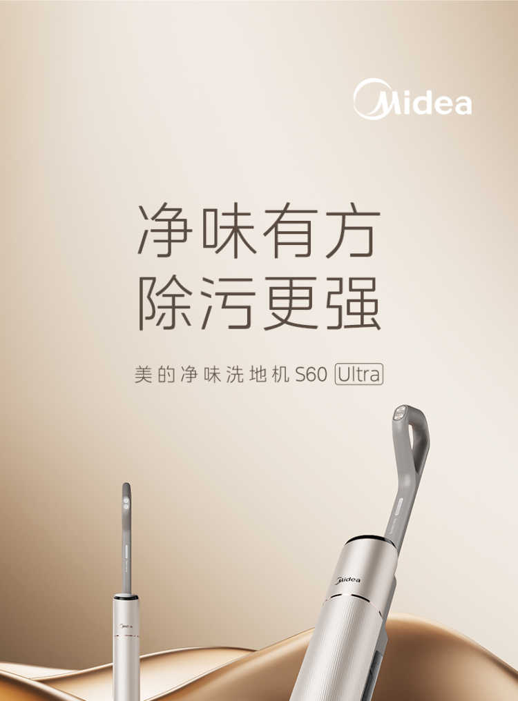 (巨邦佑)R+美的(Midea)S60Ultra净味洗地机【AI全向助力 100°除菌洗】躺平洗拖吸一体自动清洗拖地机