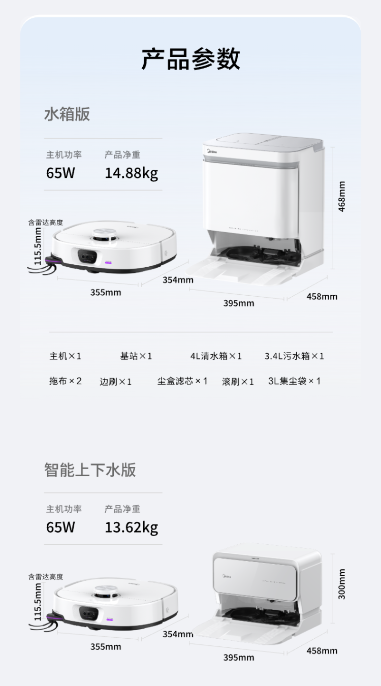 商品名称:(巨邦佑)R+美的(Midea)灵眸V16 Pro超薄自动上下水扫地机器人 家用扫拖一体免维护自动清洗拖地