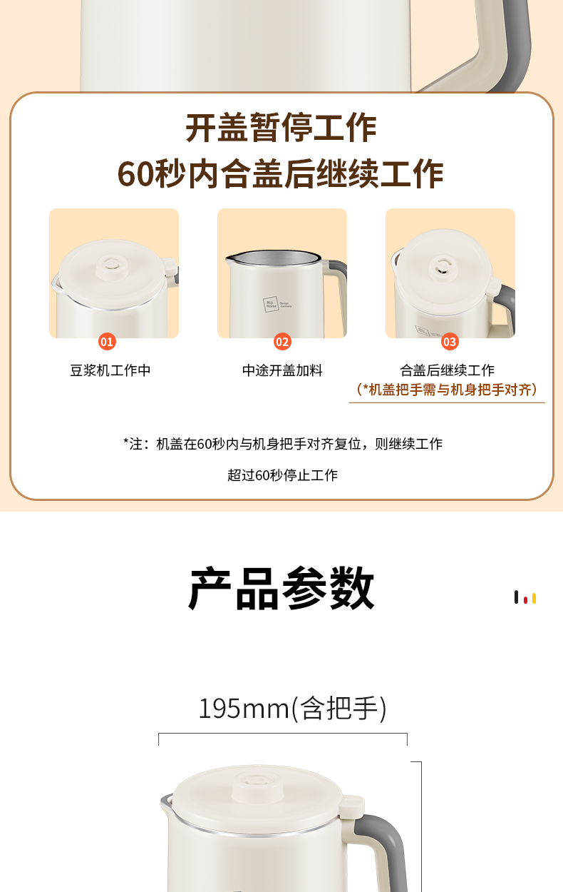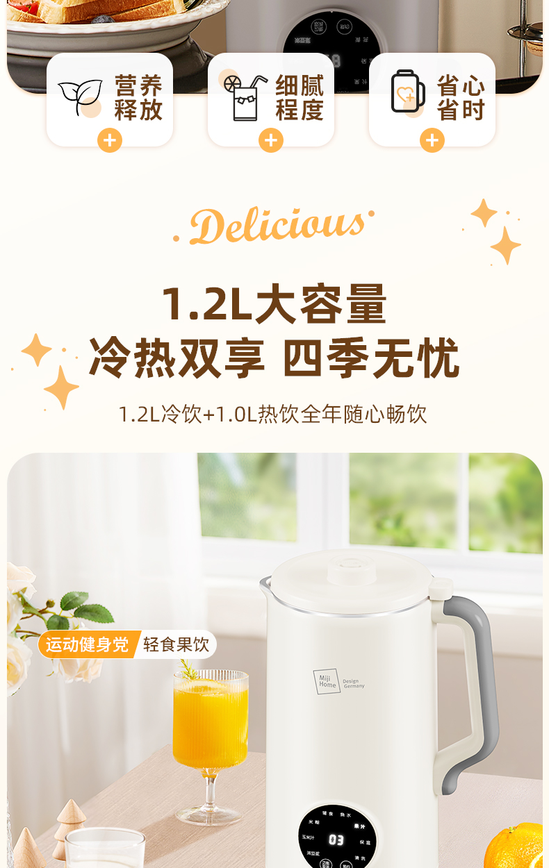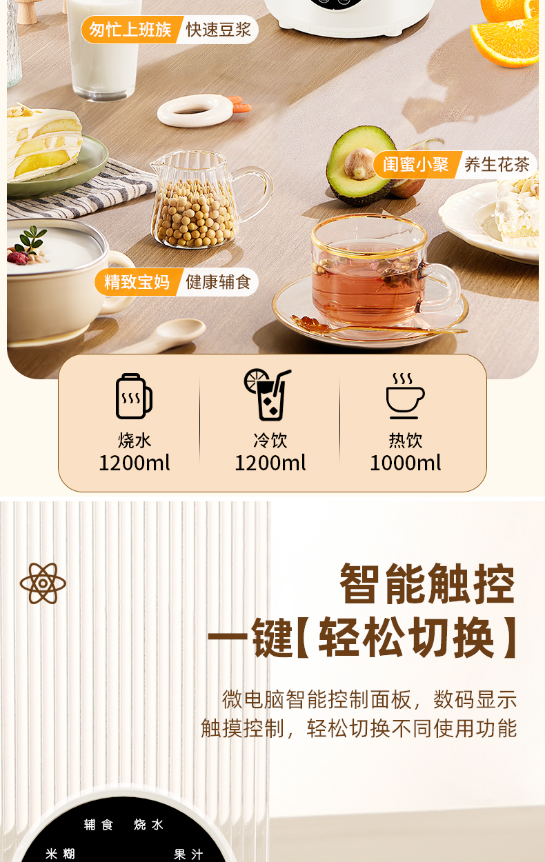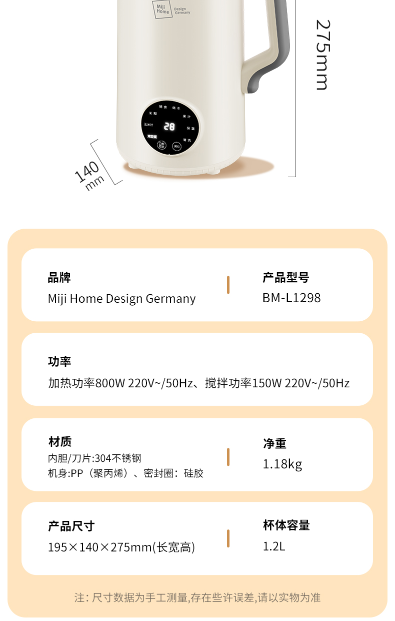 商品名称:(巨邦佑)BJ+米技 智能破壁豆浆机BM-L1298 智能触控破壁一键自清洗全自动家用
