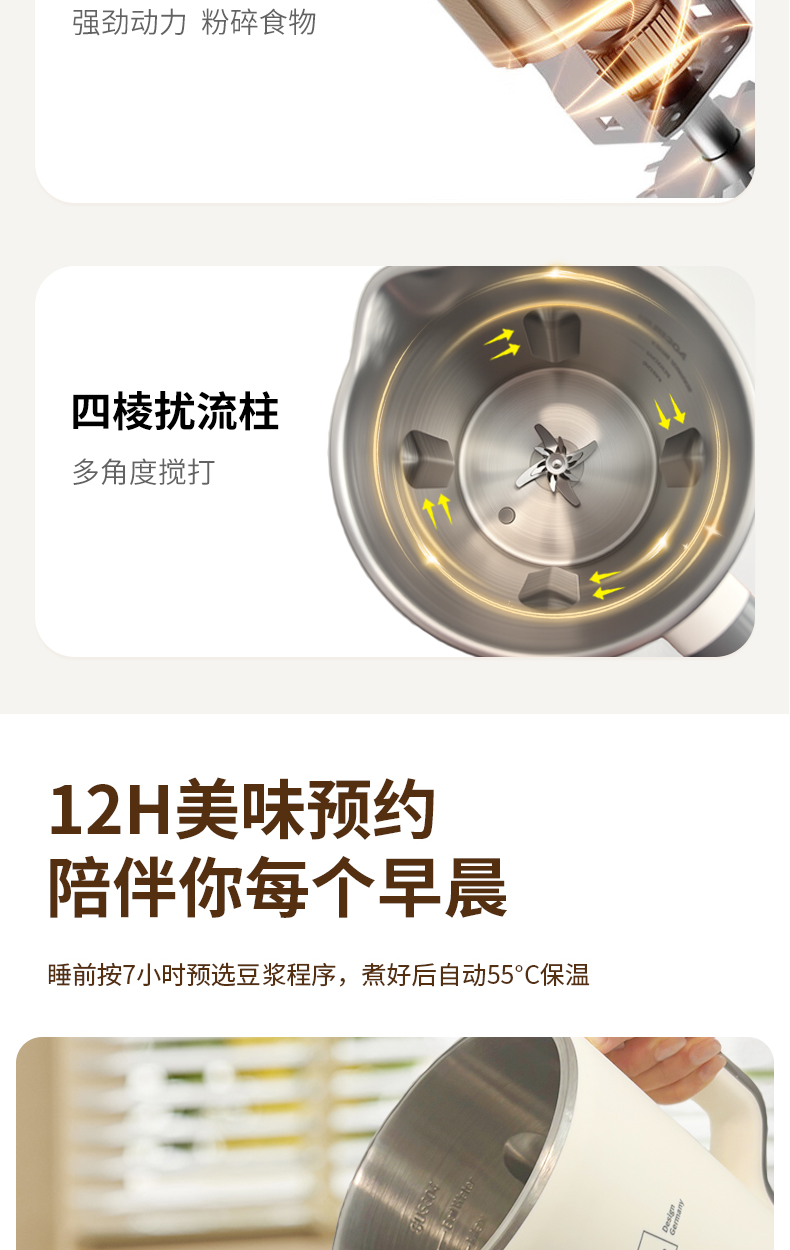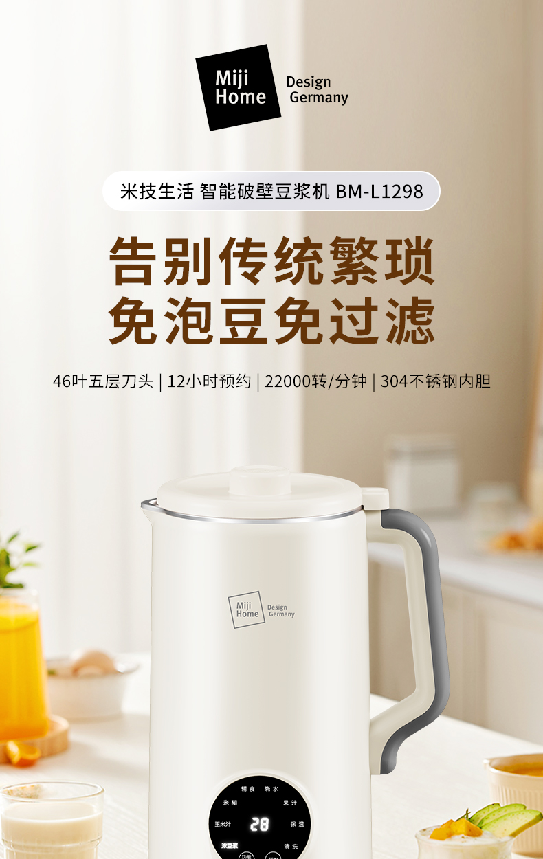 (巨邦佑)BJ+米技 智能破壁豆浆机BM-L1298 智能触控破壁一键自清洗全自动家用