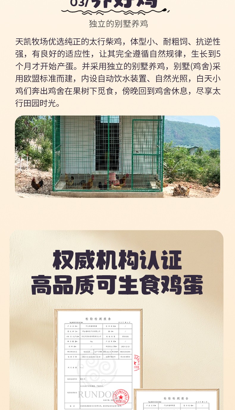 商品名称:(巨邦佑)R+小鸡海蒂可生食山养鲜鸡蛋30枚盒1450g 太行山非笼养不含沙门氏菌可生食标准新鲜鸡蛋礼盒装送礼