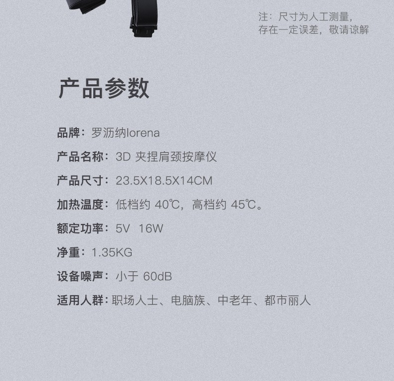 商品名称:(世星阳光)Loroina罗沥纳 3D夹捏肩颈按摩仪 L667-2 揉压穴位 解放双手 仿真手法