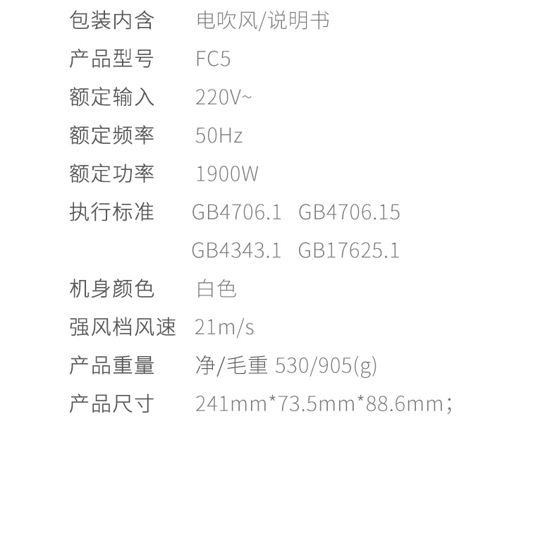 商品名称:(世星阳光)莱克 吹风机FC5 负离子 强劲动力 恒温护发 升级降噪 柔润滋养