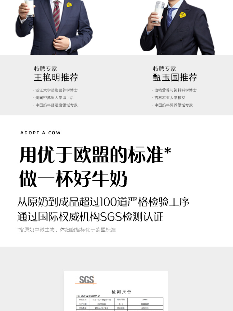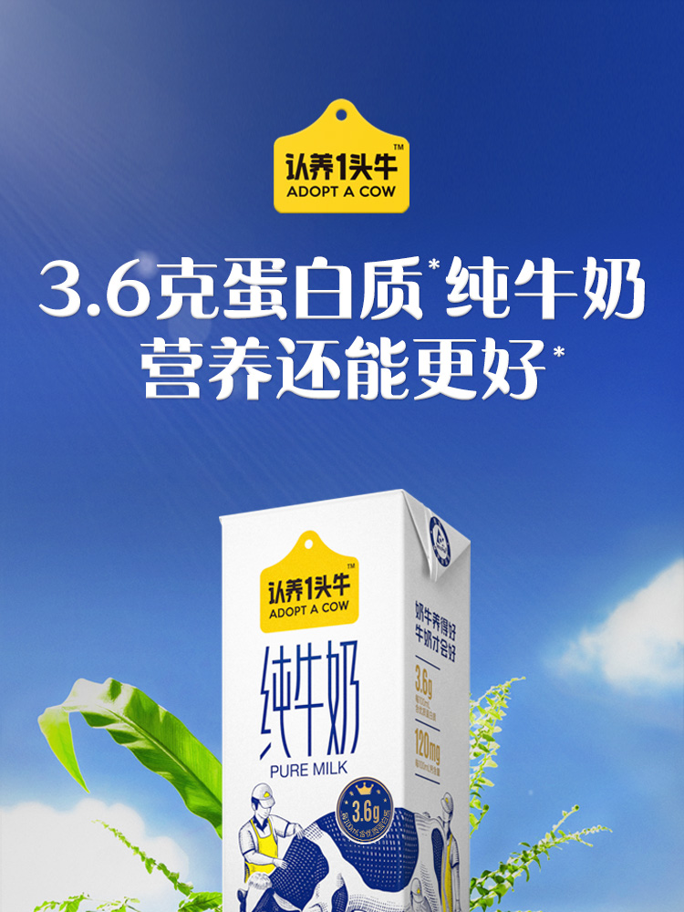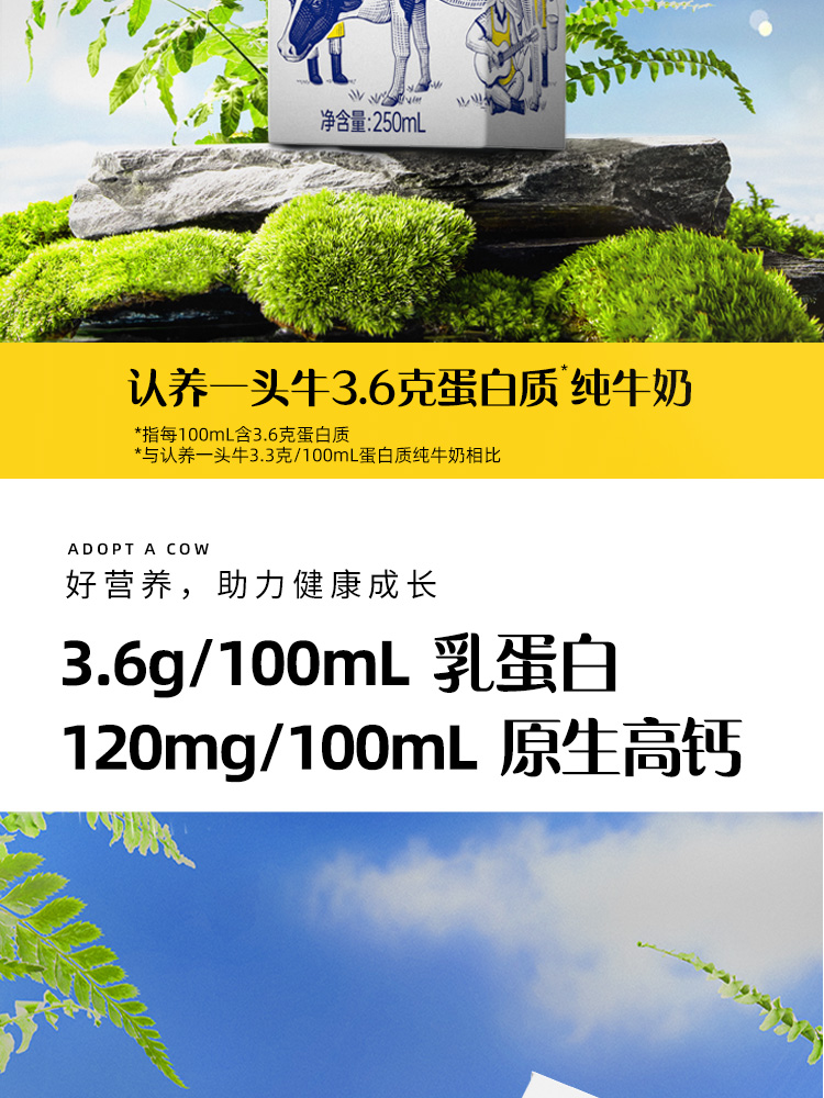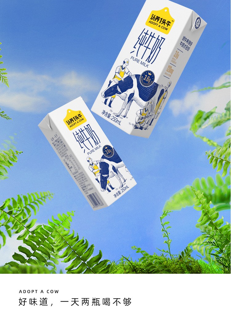 (世星阳光)认养一头牛 3.6g蛋白纯奶250ml利乐砖 1提:250ml*12盒 好营养 助力健康成长 好味道 一天两瓶不够喝 小时候玻璃瓶牛奶的味道