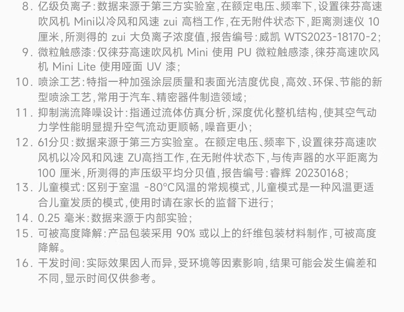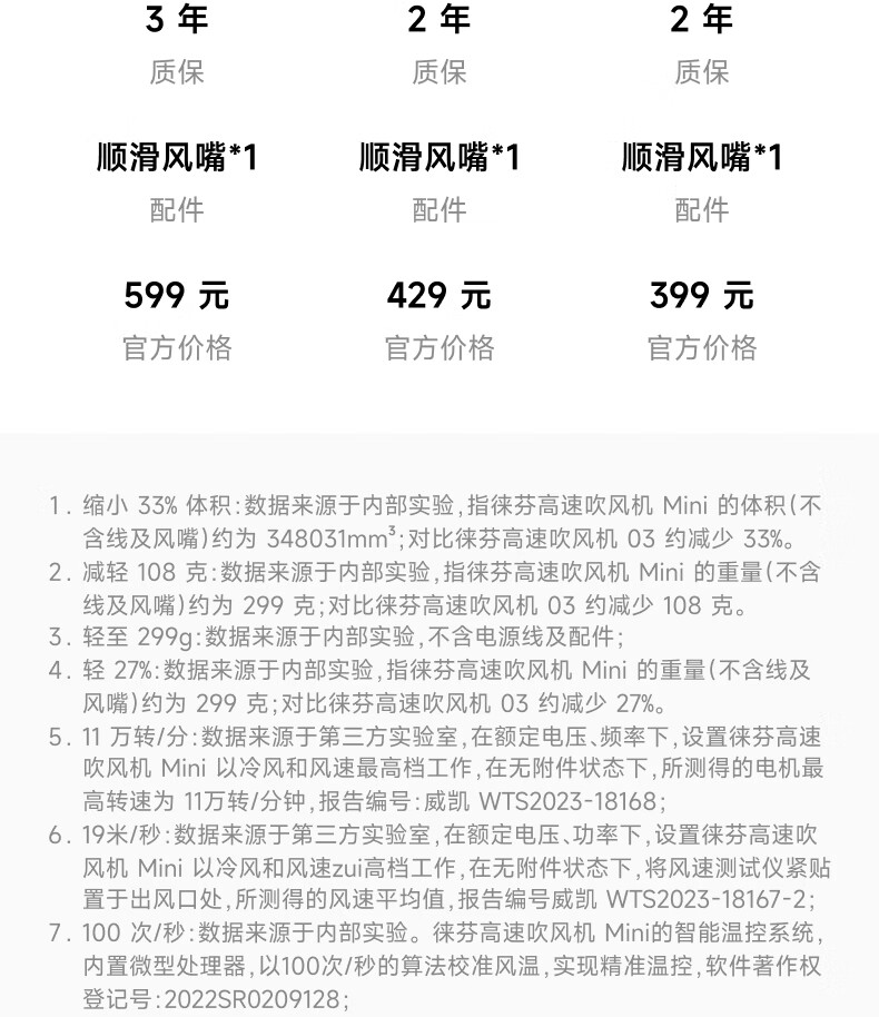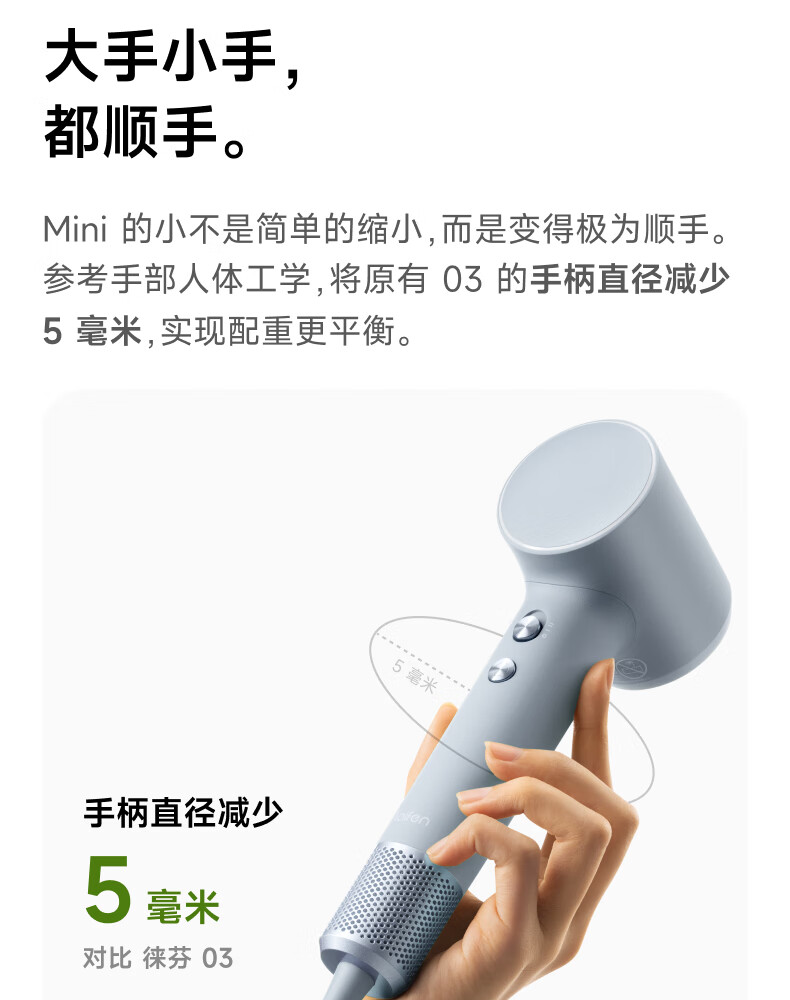 商品名称:(康恩)徕芬新一代高速吹风机mini(白色)家用高速吹风机 1100W小巧便携旅行负离子低噪音