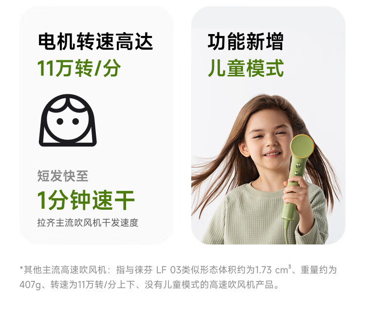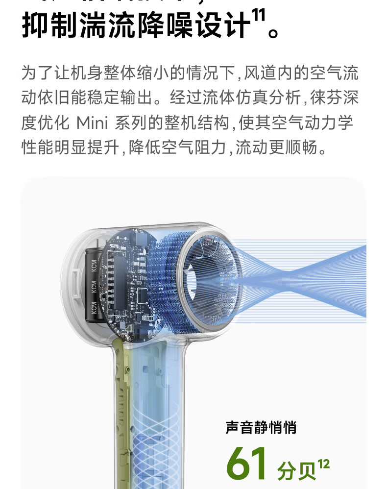 (康恩)徕芬新一代高速吹风机mini(白色)家用高速吹风机 1100W小巧便携旅行负离子低噪音