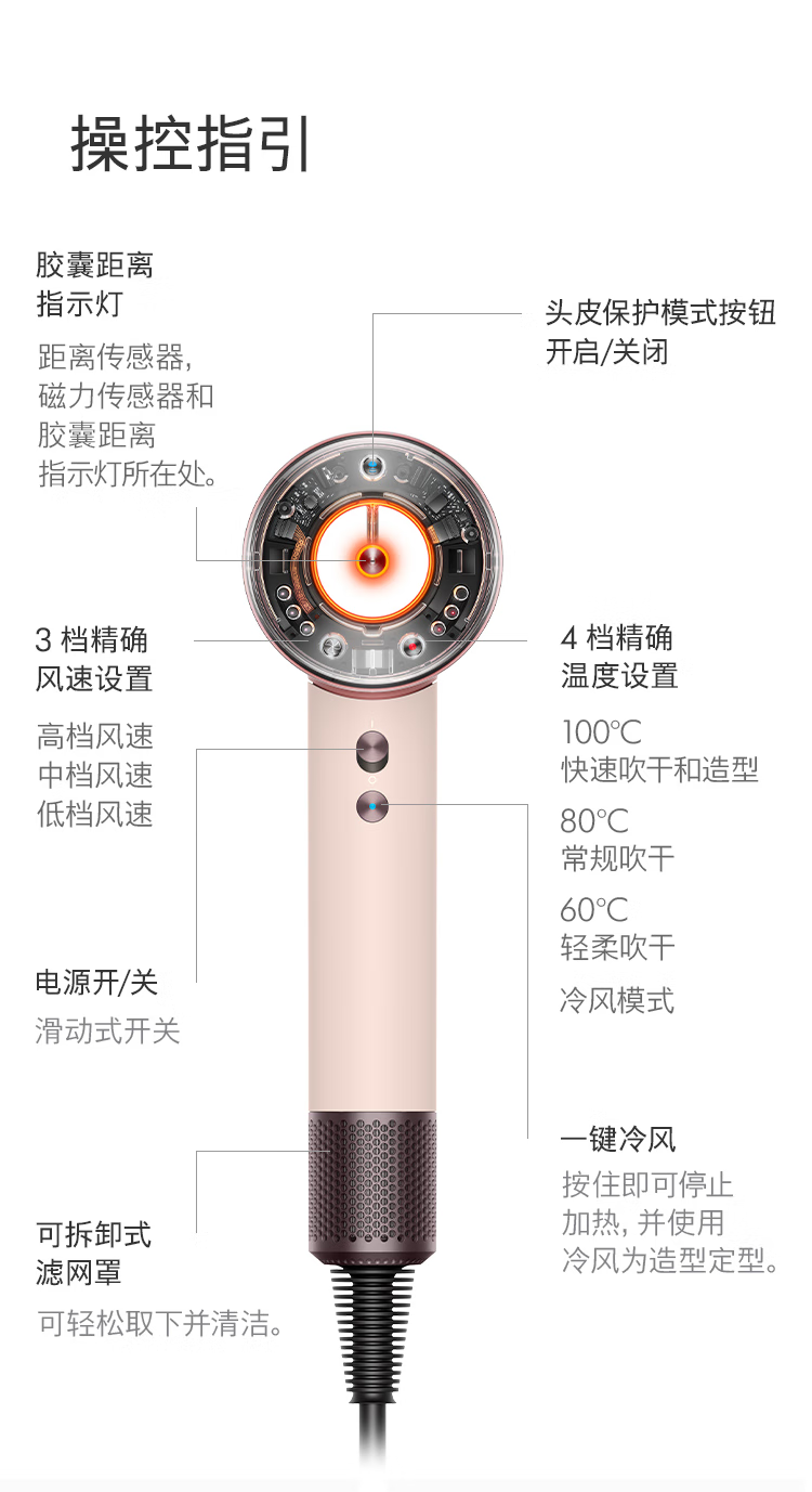 商品名称:(康恩)戴森HD16全新智能吹风机电吹风负离子速干护发 1600W(落日玫瑰色)