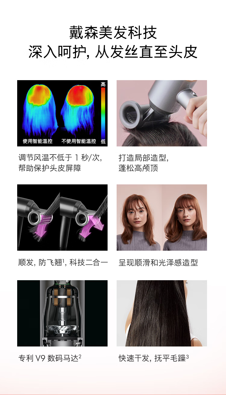 (康恩)戴森HD15高速吹风电吹风负离子速干护发1600W(紫红色)