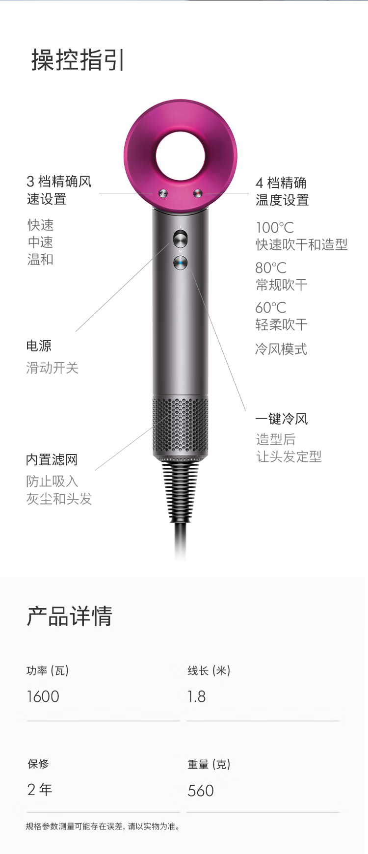 商品名称:(康恩)戴森HD15高速吹风电吹风负离子速干护发1600W(紫红色)