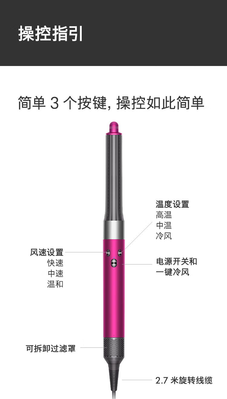 商品名称:(康恩)戴森Airwrap多功能美发棒HS05入门套装卷发棒1300W卷发造型吹风顺发(紫红镍色)