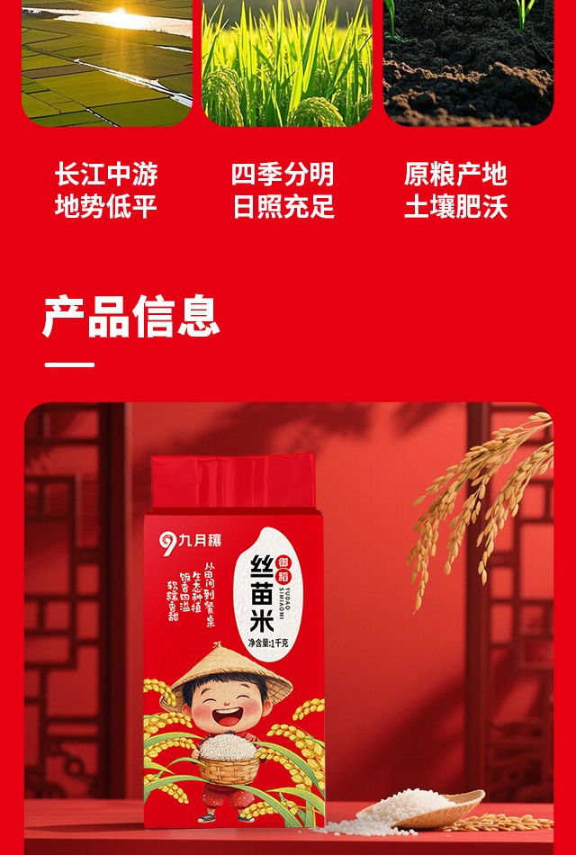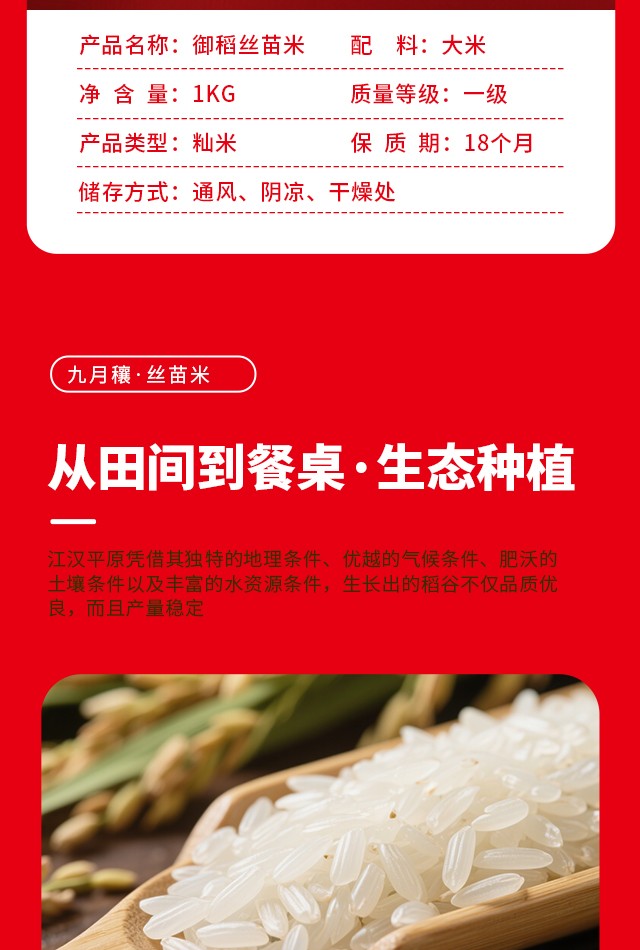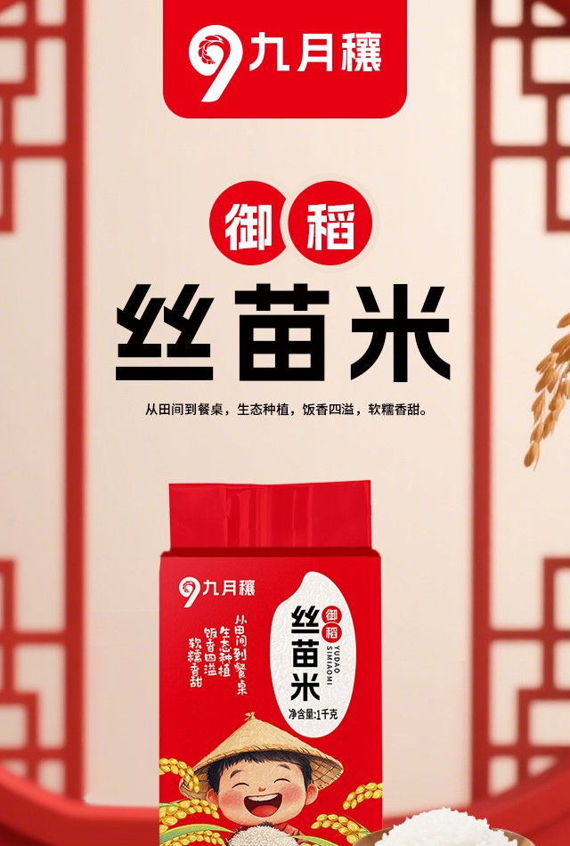 商品名称:(世星阳光)九月穰 御稻丝苗米1kg 生态种植当季新米 煲仔饭长粒米