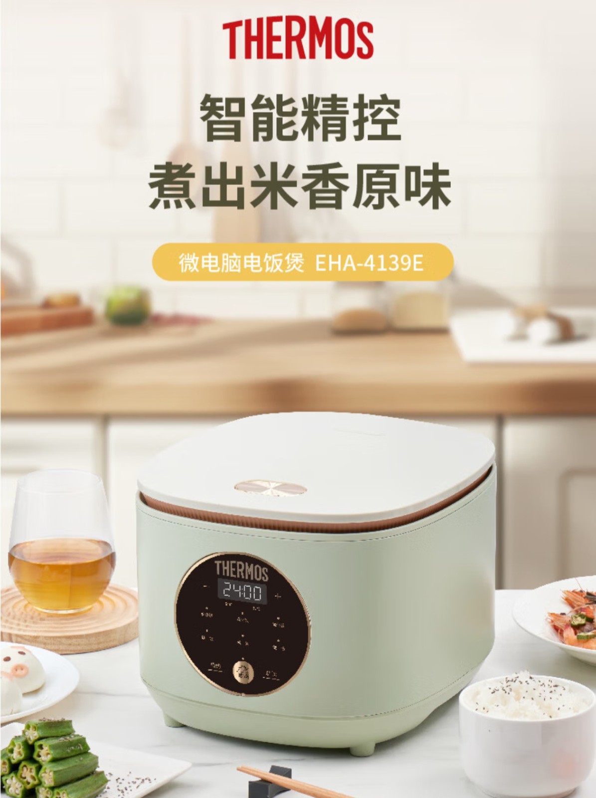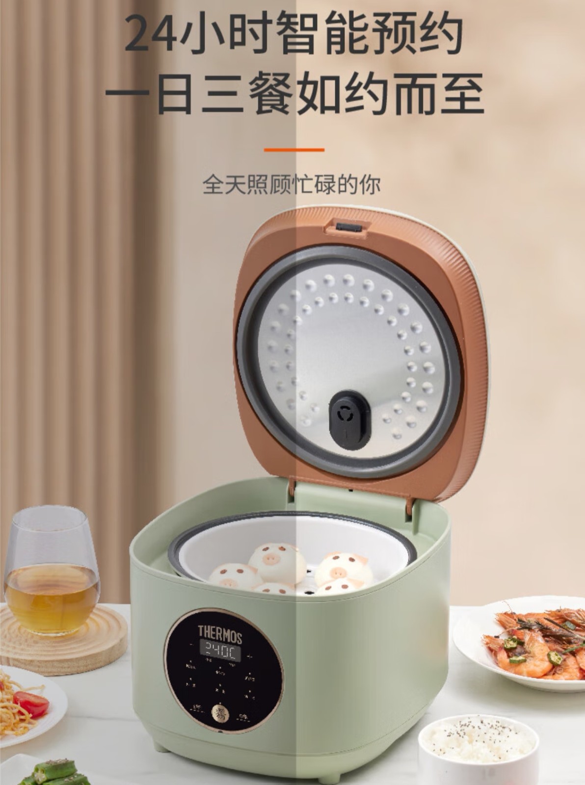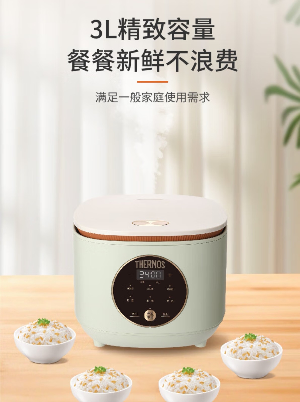 商品名称:(巨邦佑)T+膳魔师电饭煲奶绿色3L 600W大容量功率多功能锅饭煲煮饭锅 浅绿色 3L EHA-4139E