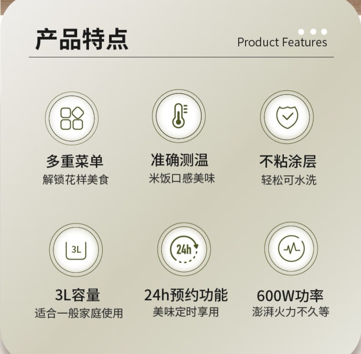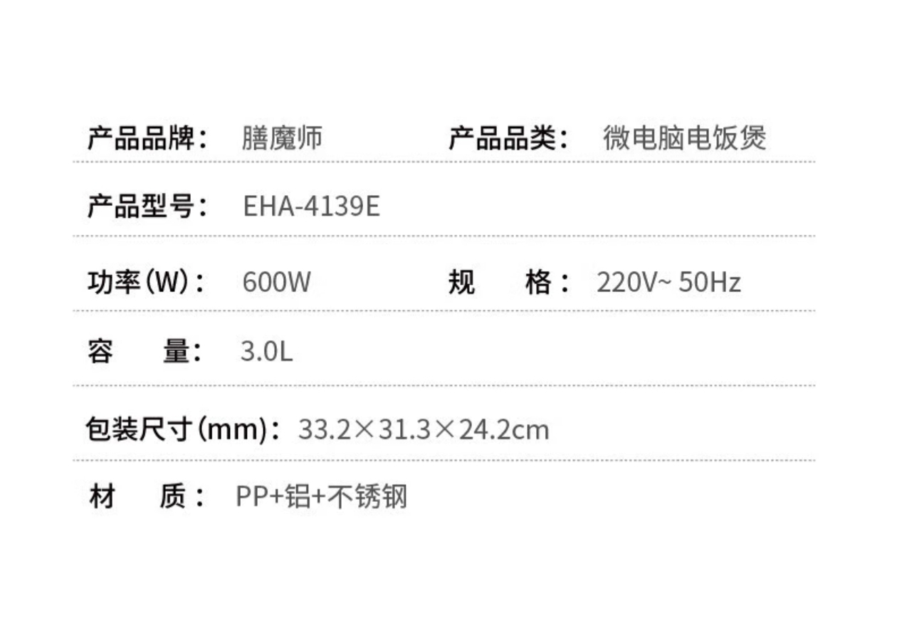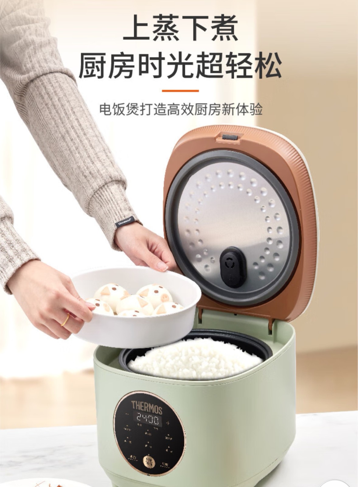 商品名称:(巨邦佑)T+膳魔师电饭煲奶绿色3L 600W大容量功率多功能锅饭煲煮饭锅 浅绿色 3L EHA-4139E