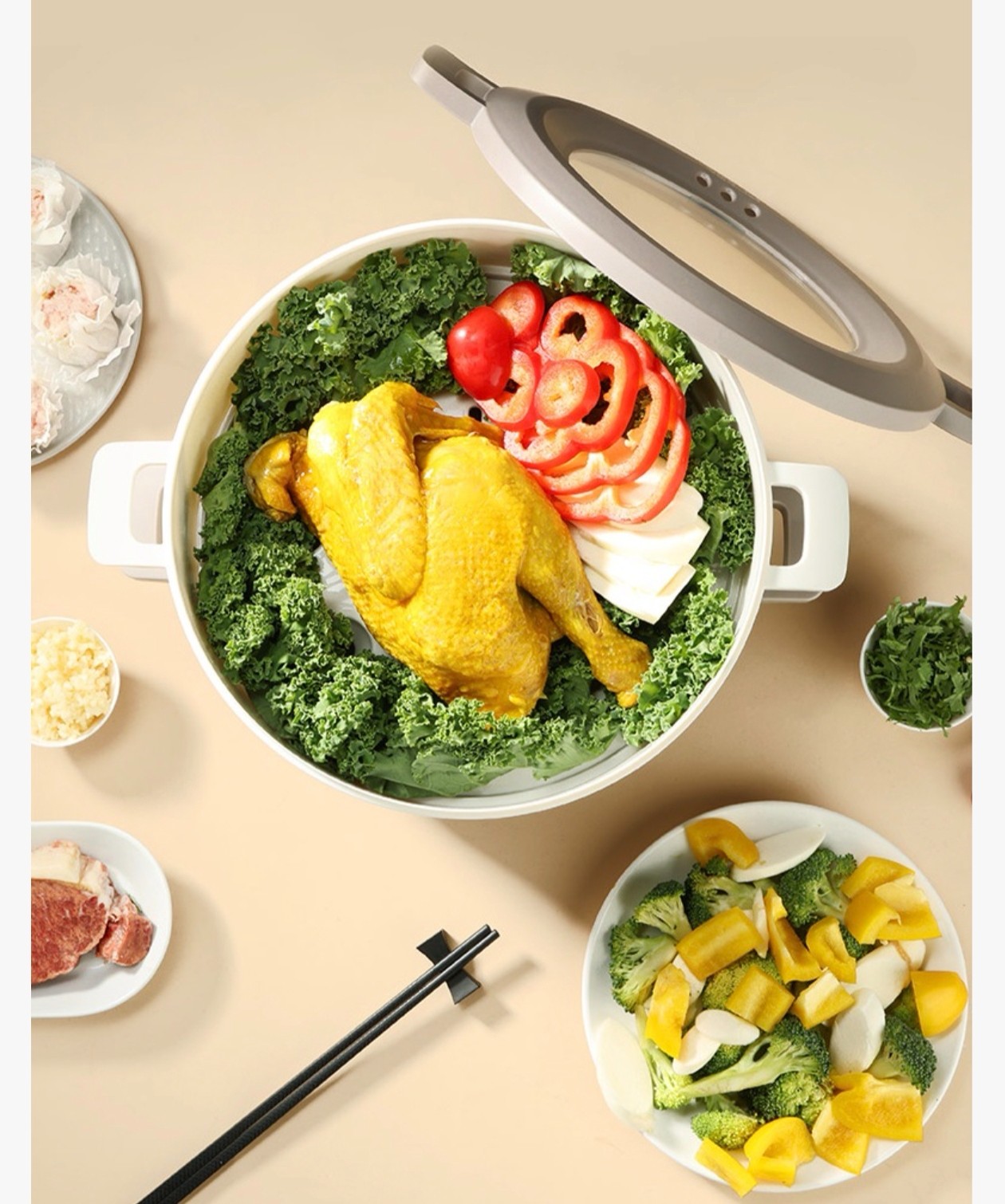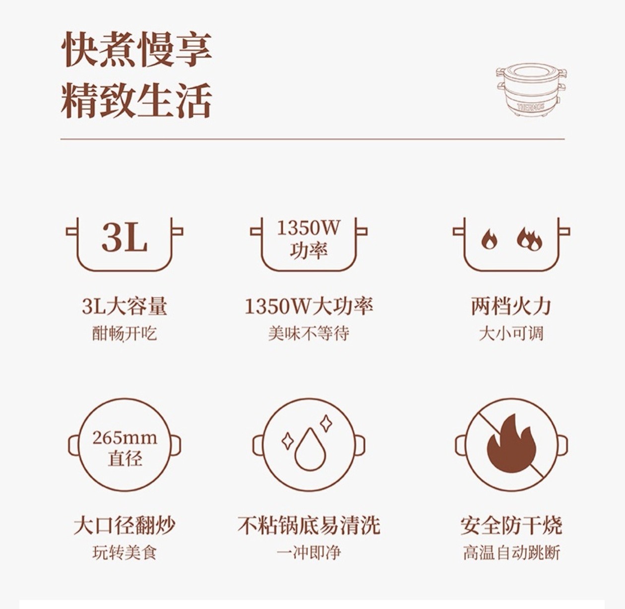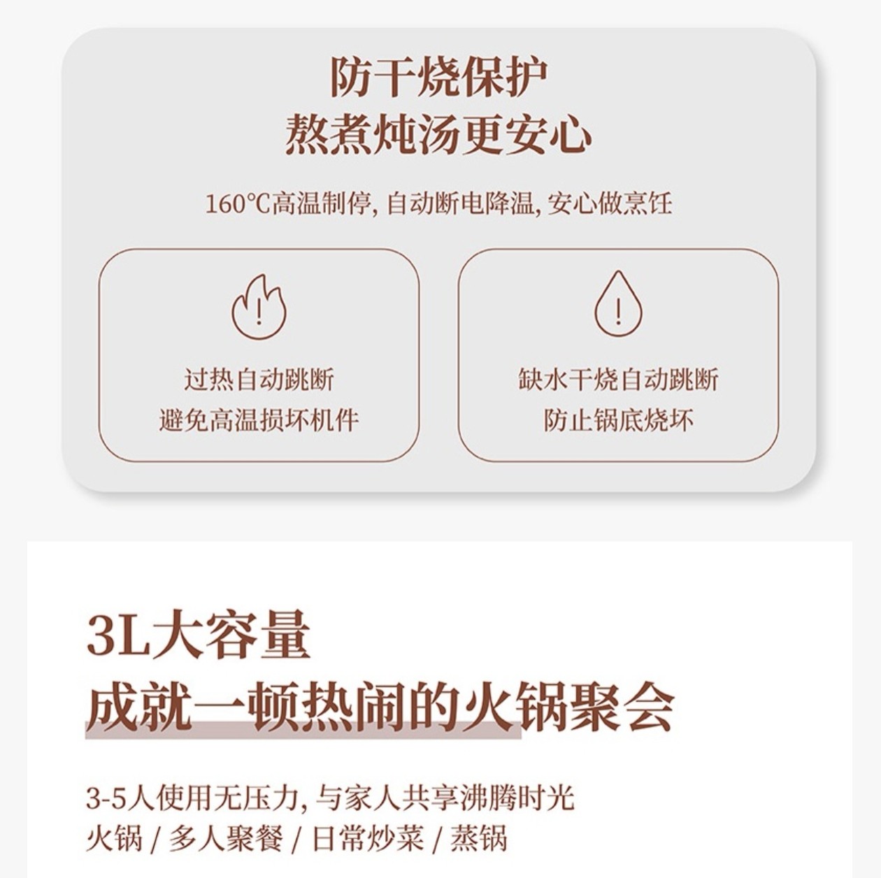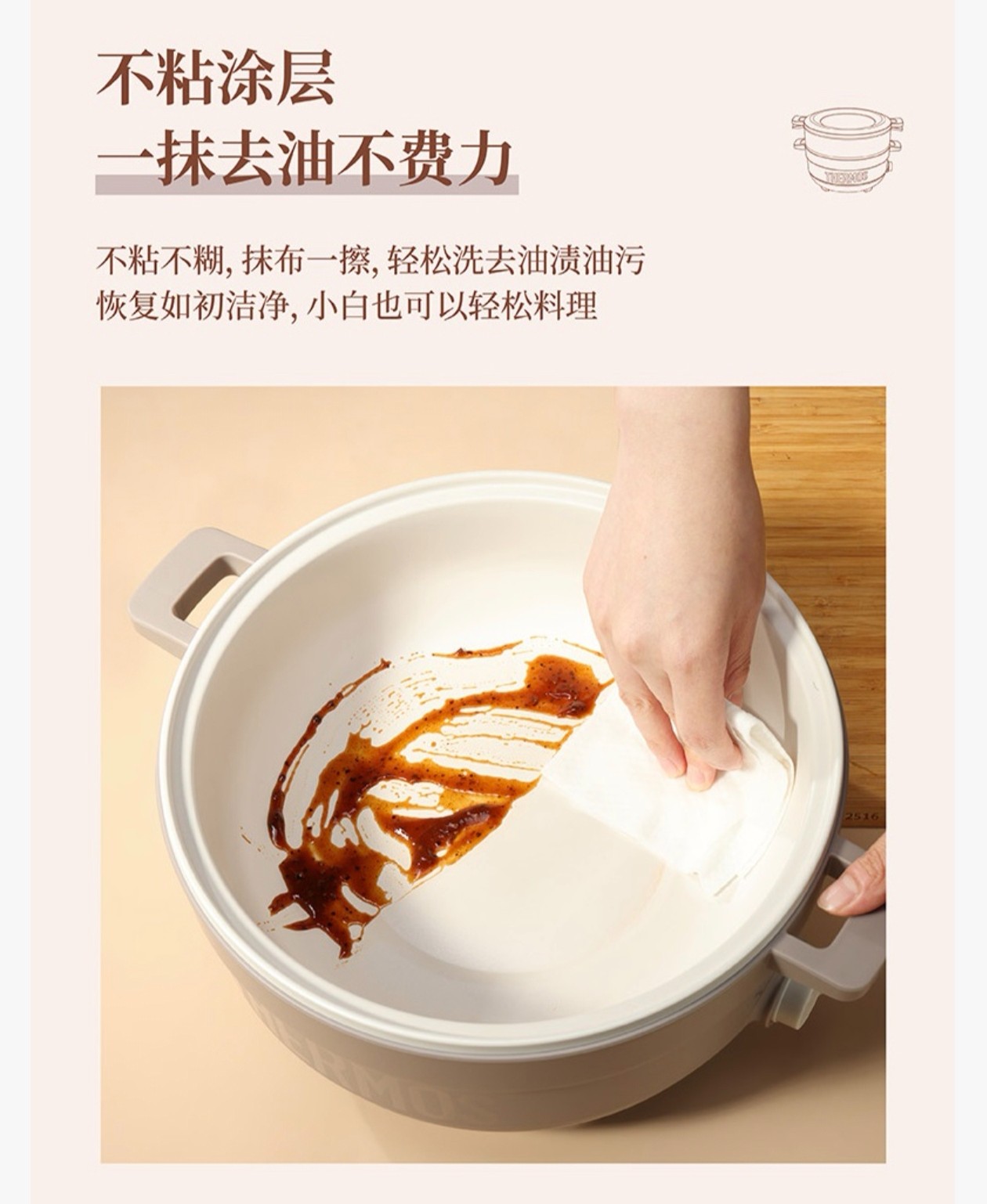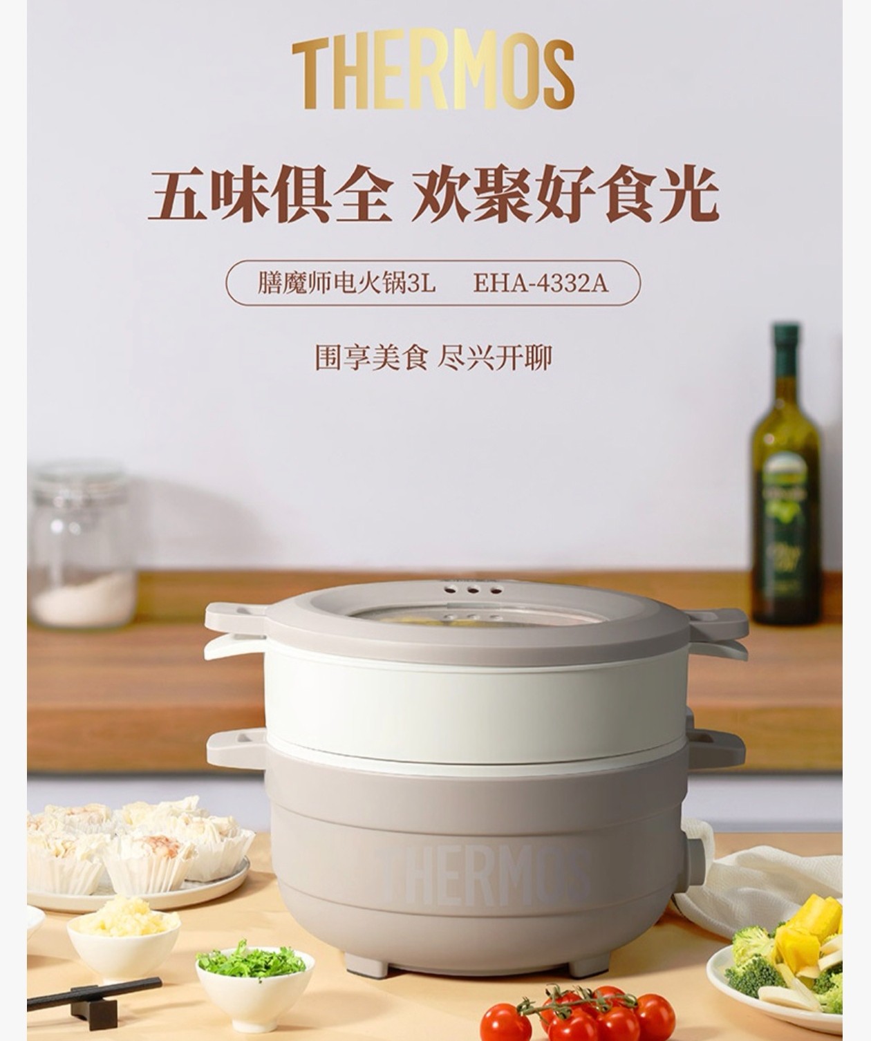 (巨邦佑)T+膳魔师多功能电煮锅EHA-4332A 3L 上蒸下煮电热火锅不粘锅防干烧