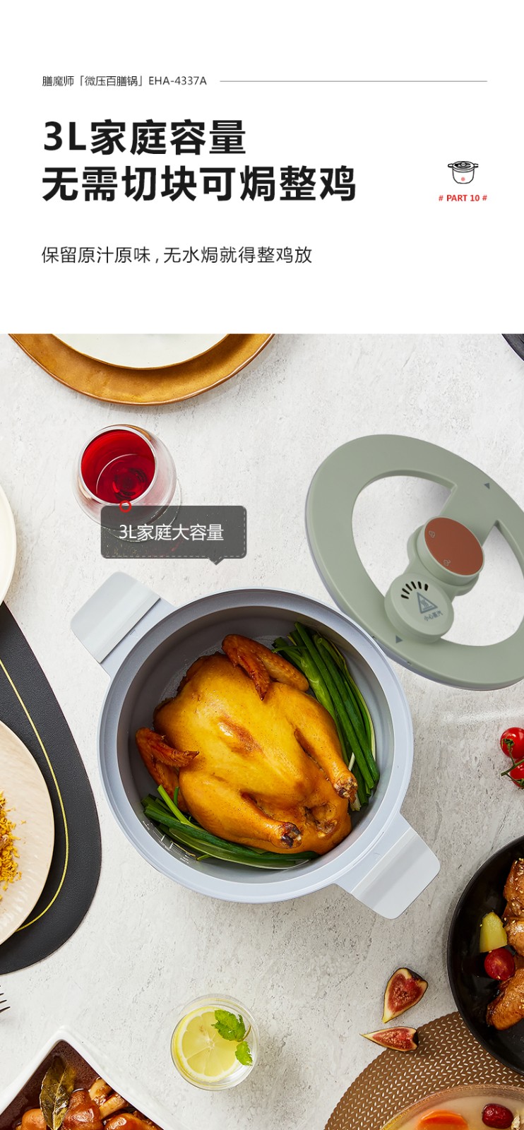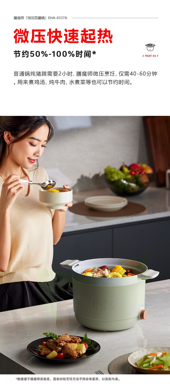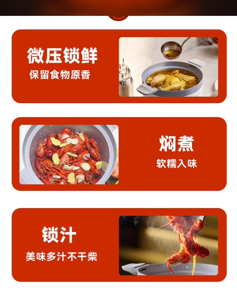 (汇景缘)蓝宝·电压力锅BP-YL176A 容量3L 大容量多功能电饭煲智能预约高压锅 米白色