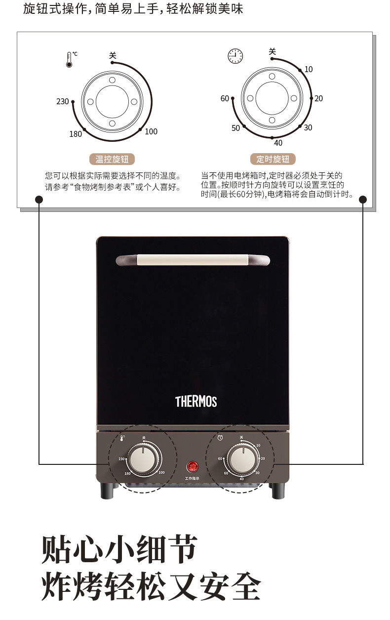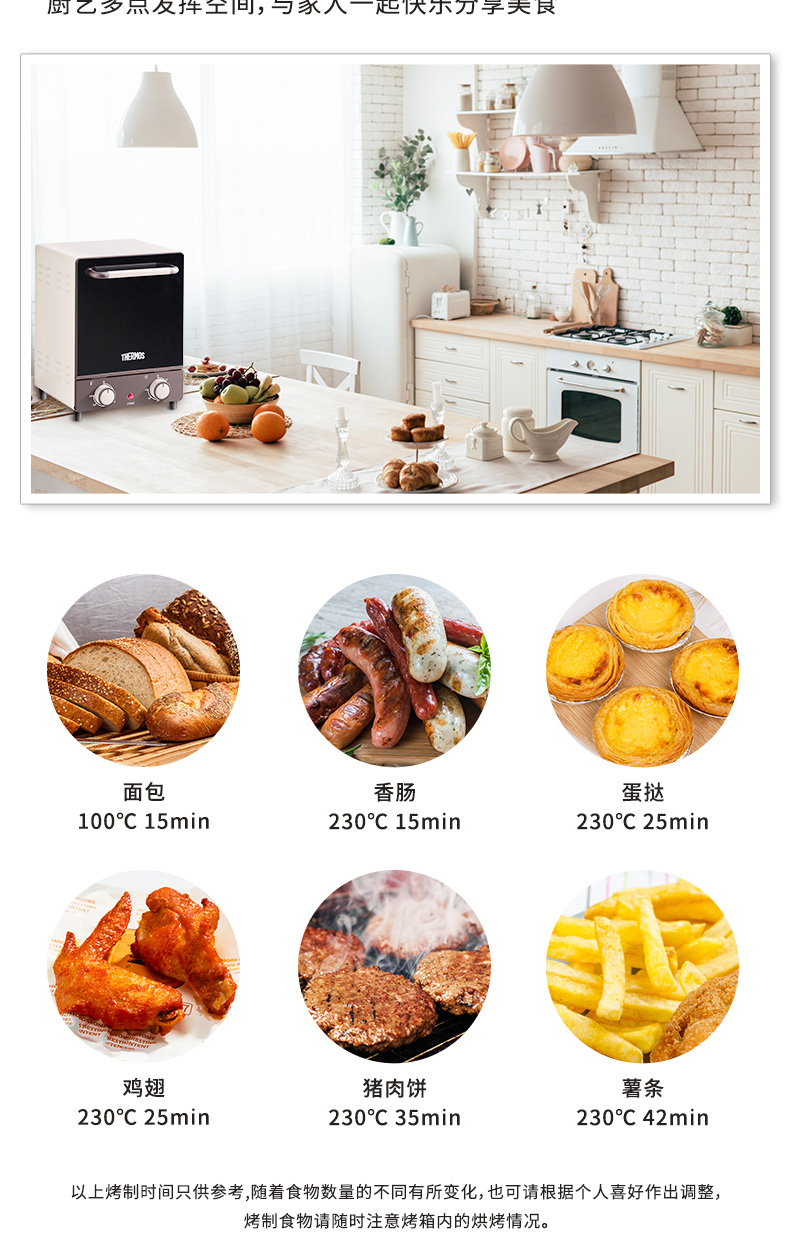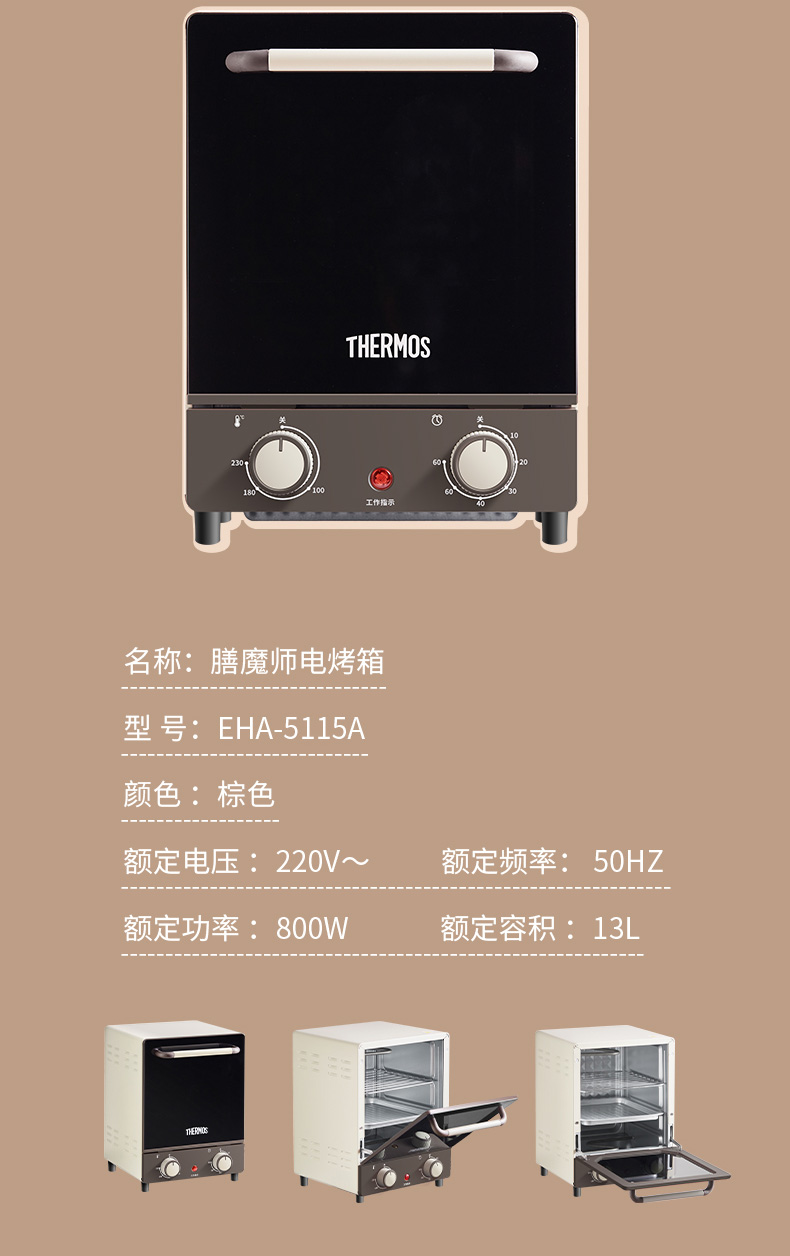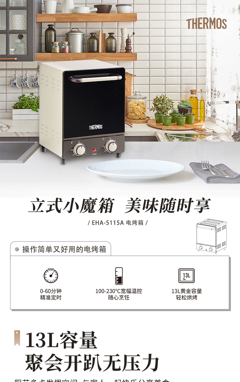 商品名称:(世星阳光)YL+膳魔师(THERMOS)电烤箱 13L 家用定时温控 烘焙 大容量 家庭立式烤箱 黄金容量EHA-5115A