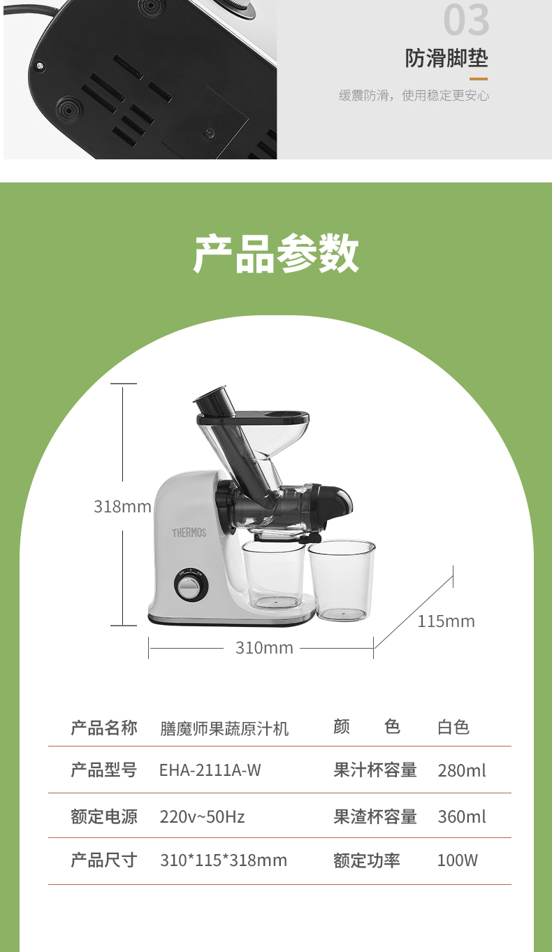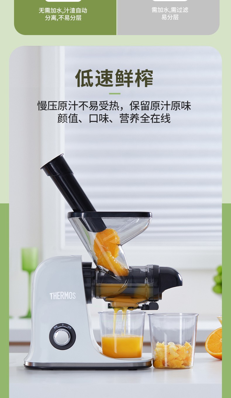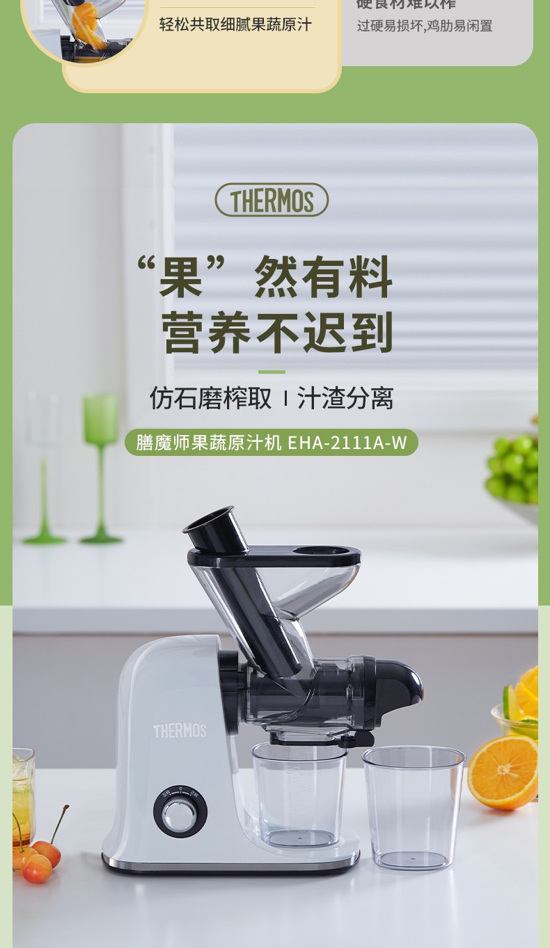 商品名称:(世星阳光)YL+膳魔师(THERMOS)新款榨汁机原汁机渣汁分离小型家用果汁机便携式水果蔬菜全自动料理机EHA-2111A-W