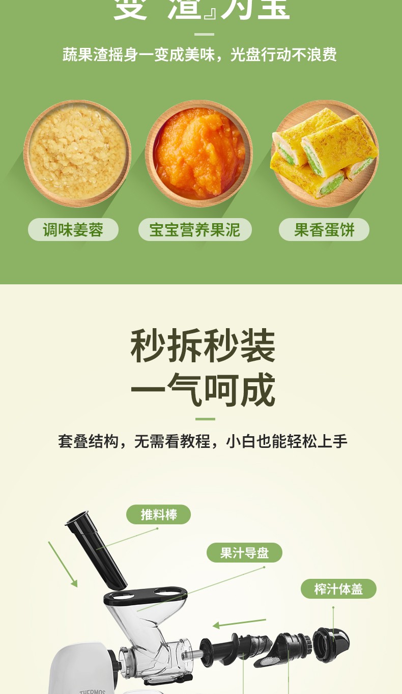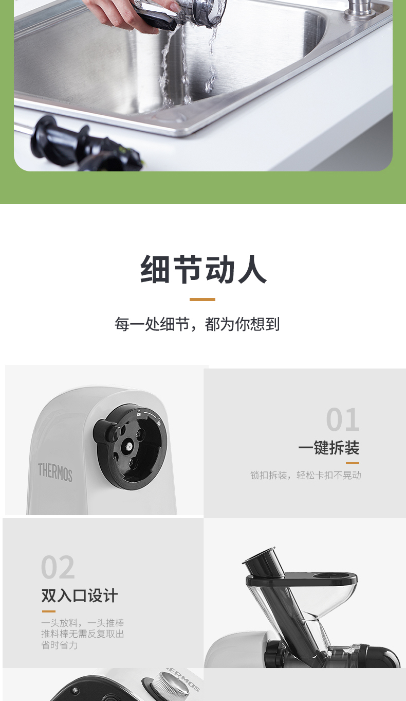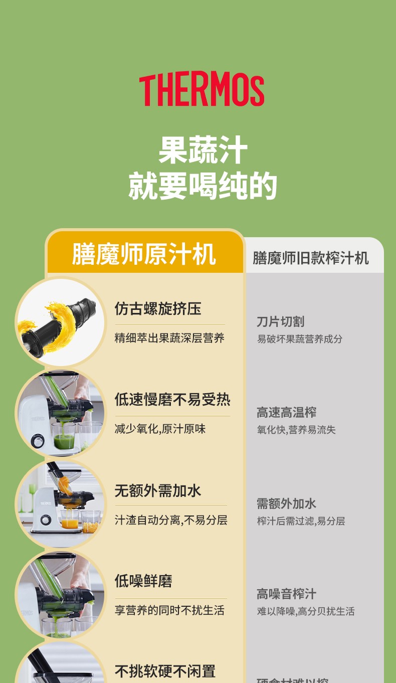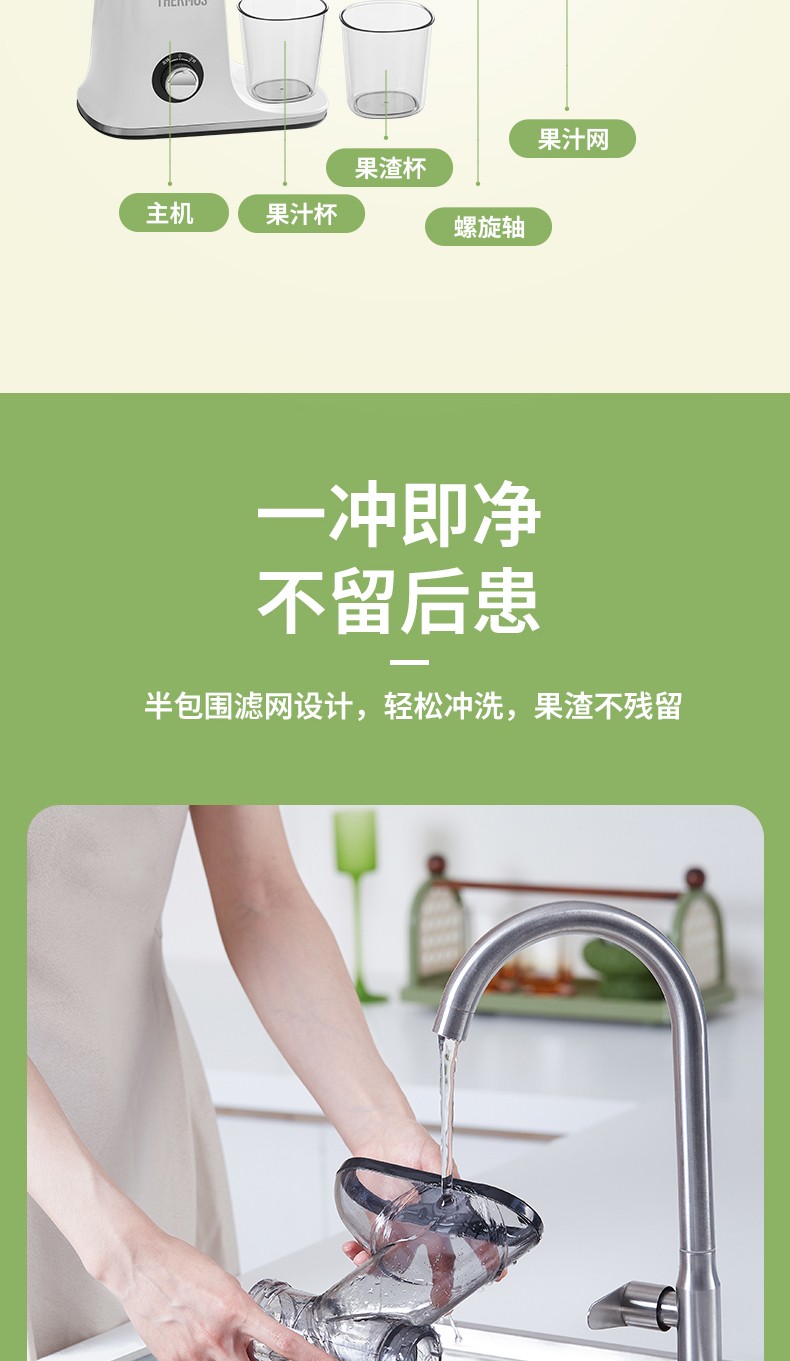 商品名称:(世星阳光)YL+膳魔师(THERMOS)新款榨汁机原汁机渣汁分离小型家用果汁机便携式水果蔬菜全自动料理机EHA-2111A-W