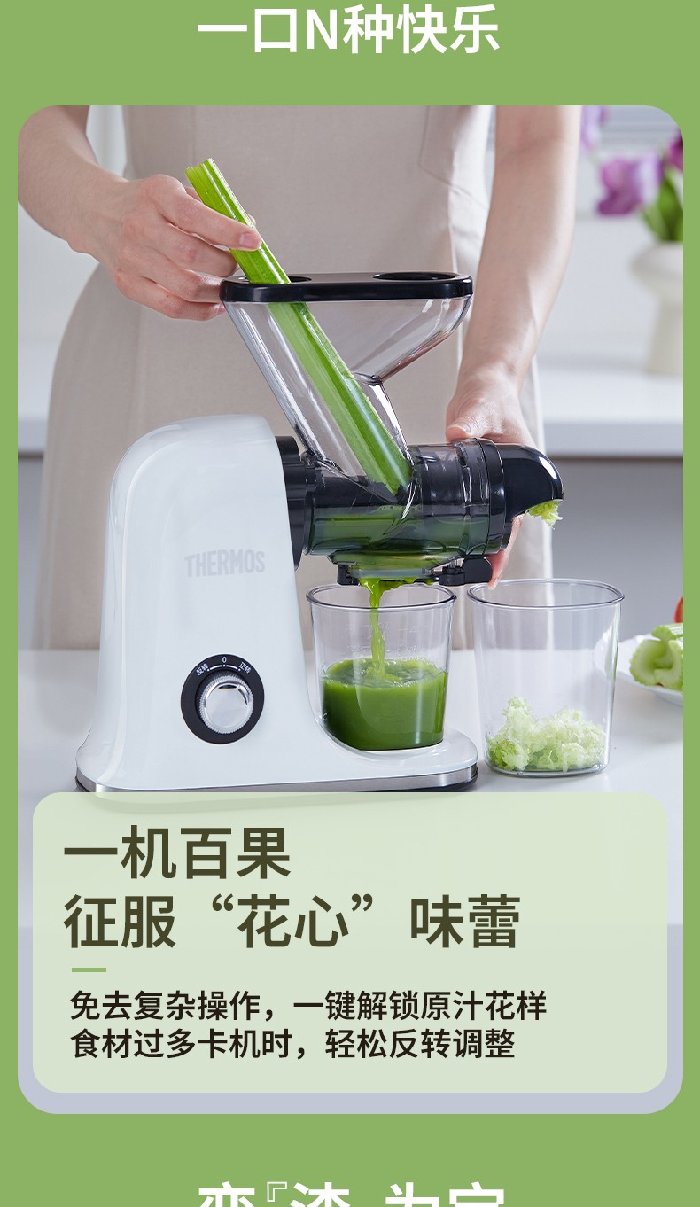 (世星阳光)YL+膳魔师(THERMOS)新款榨汁机原汁机渣汁分离小型家用果汁机便携式水果蔬菜全自动料理机EHA-2111A-W