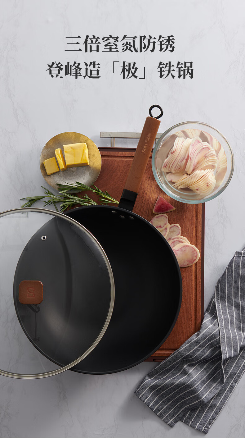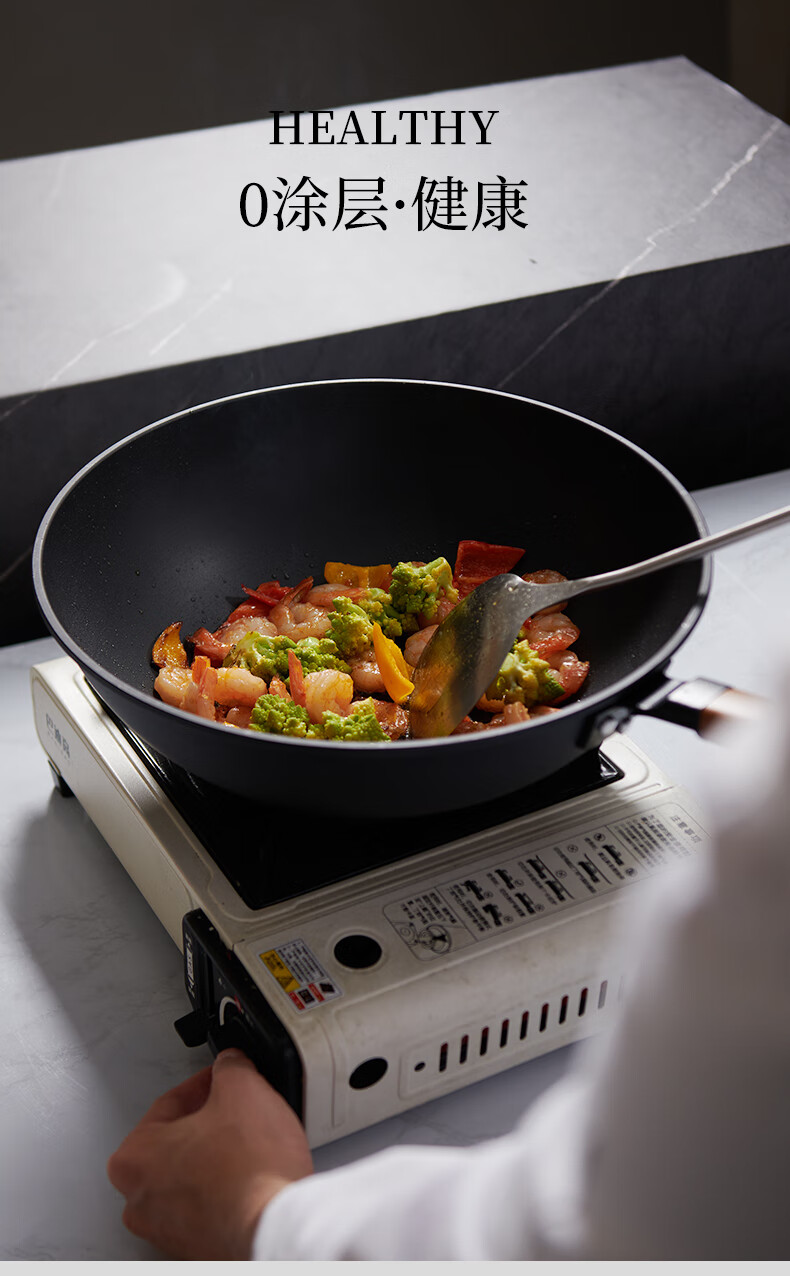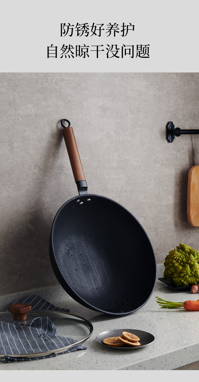 (世星阳光)+WY 苏拉食光 精铁炒锅32cm 不粘锅 无涂层 铁锅 轻量家用炒菜锅