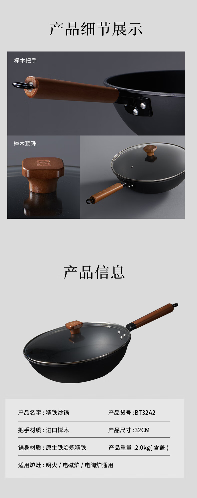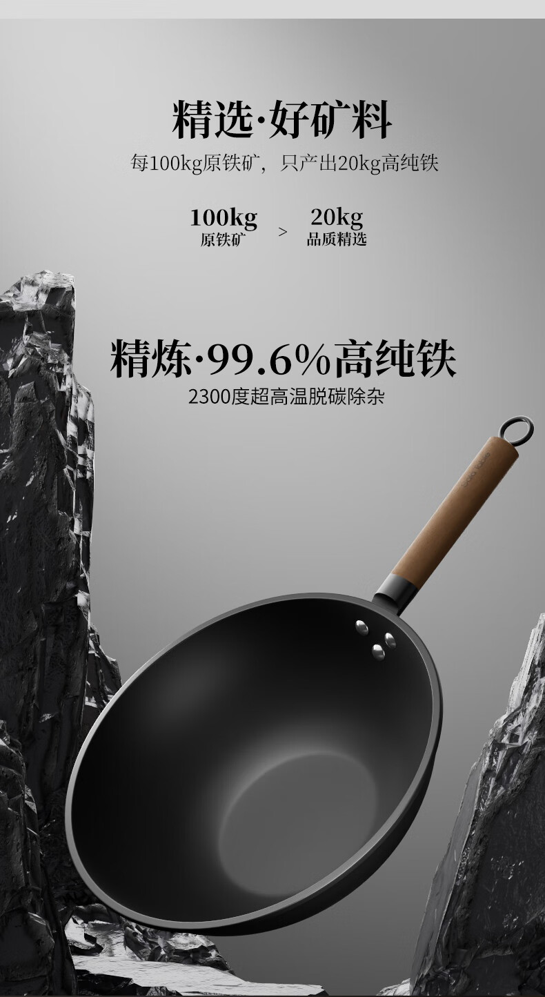 商品名称:(世星阳光)+WY 苏拉食光 精铁炒锅32cm 不粘锅 无涂层 铁锅 轻量家用炒菜锅