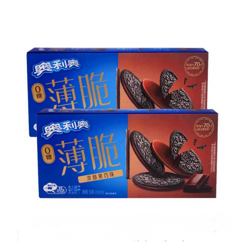 (中百)奥利奥薄脆124g*2盒,(0糖黑巧味低糖黑芝麻味),口味随机
