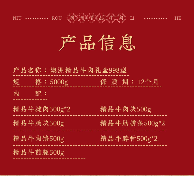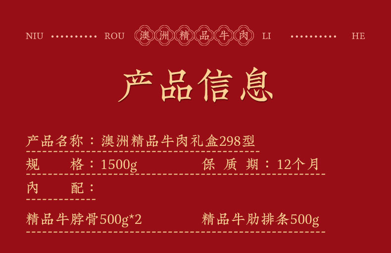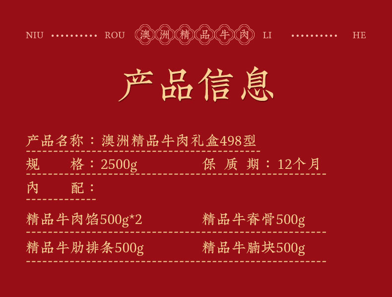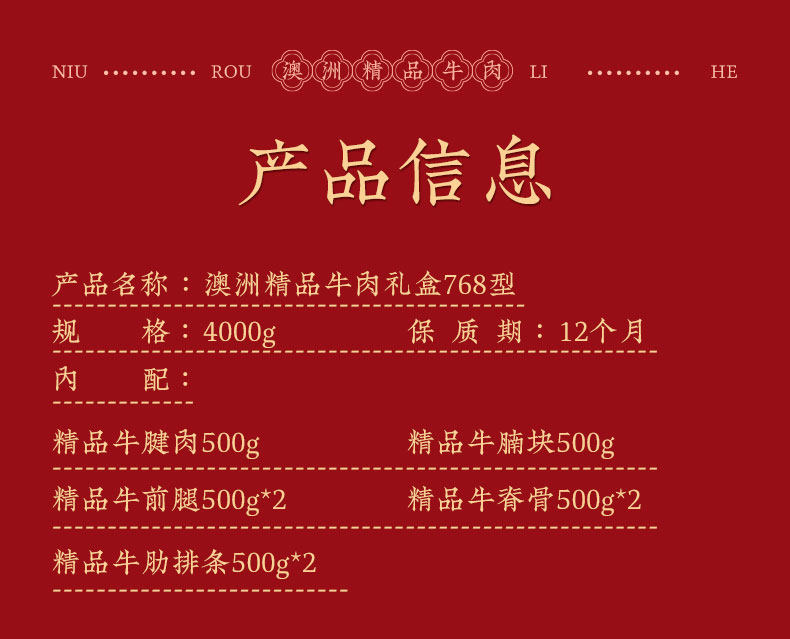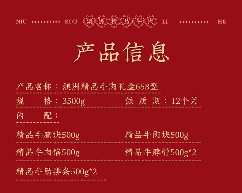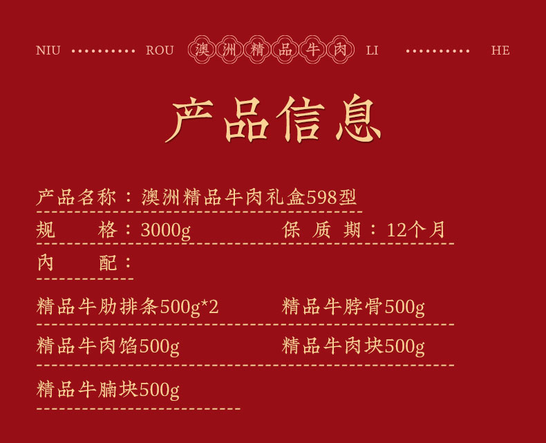 商品名称:(世星阳光)伯纳德 澳洲精品牛肉礼盒 澳洲进口牛肉 美味