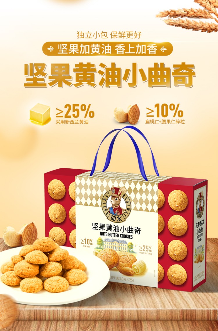 商品名称:(超运·禾贸)如水坚果黄油小曲奇1000g 曲奇早餐代餐儿童老年人休闲零食