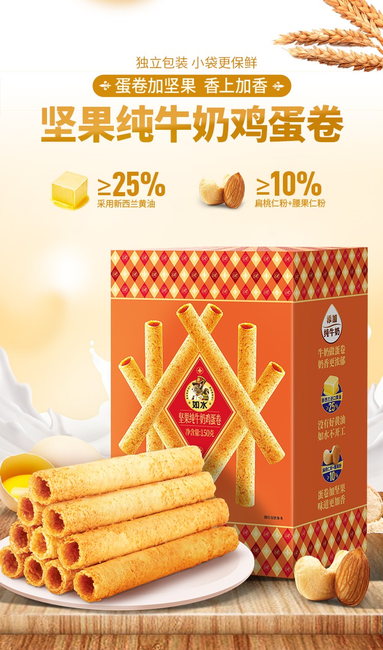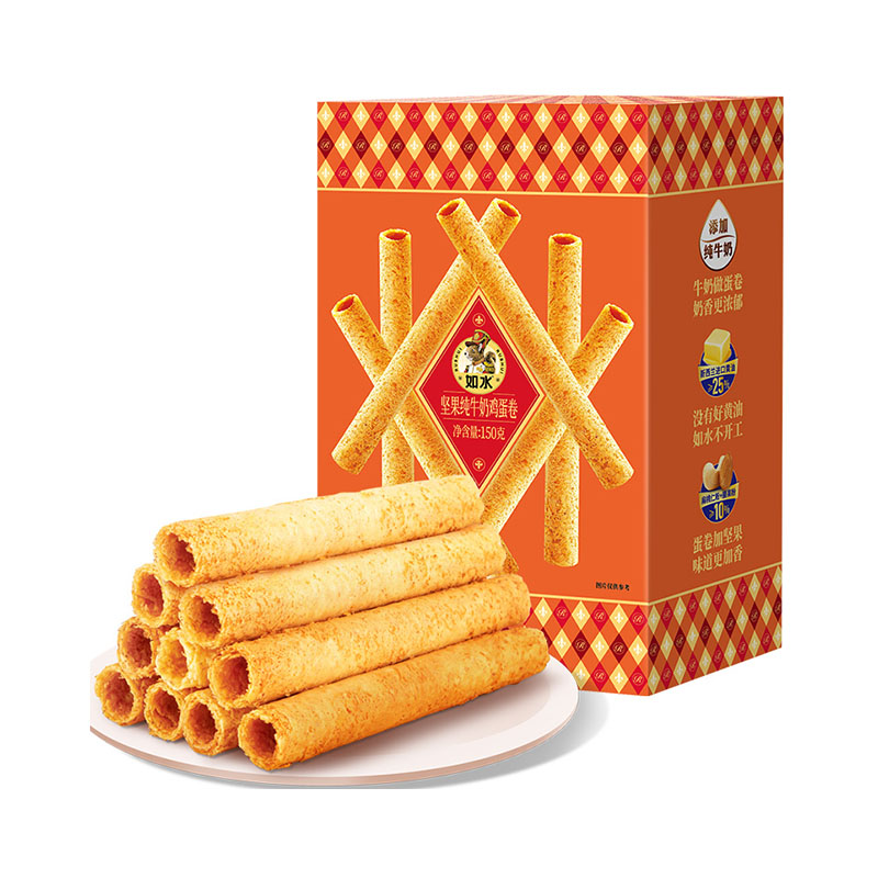 (超运·禾贸)如水坚果纯牛奶鸡蛋卷150g 曲奇早餐代餐儿童老年人休闲零食